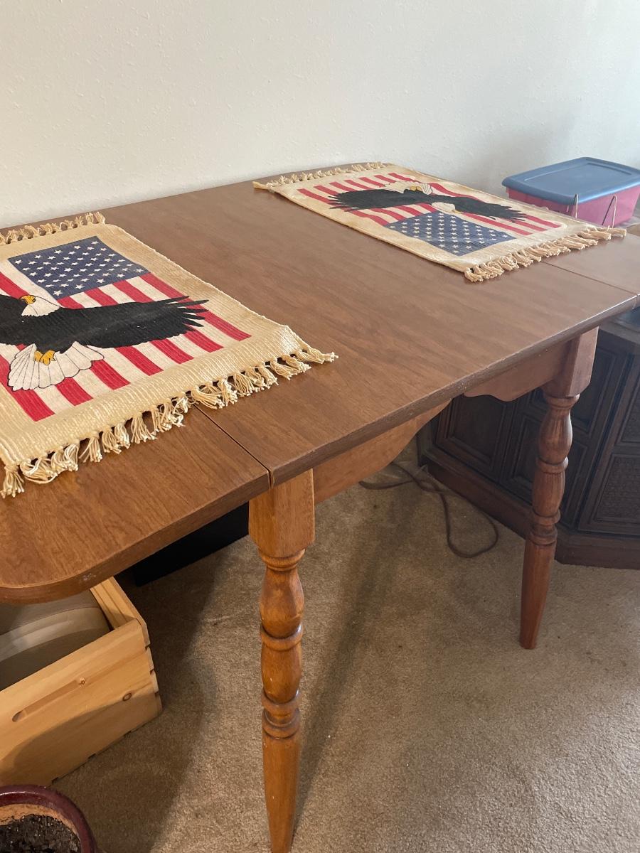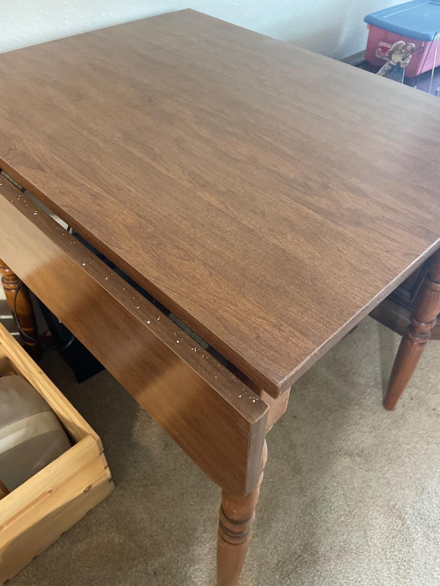 Drop leaf table 30” deep x 25” wide when leaf is folded 42” wide when it’s open
