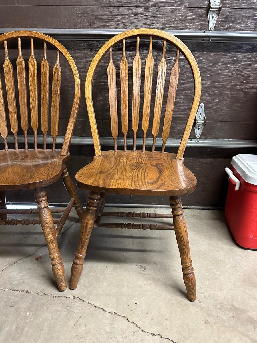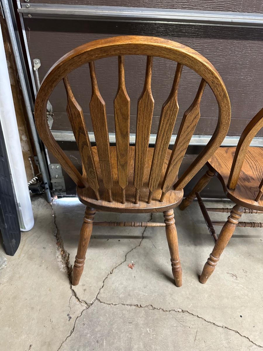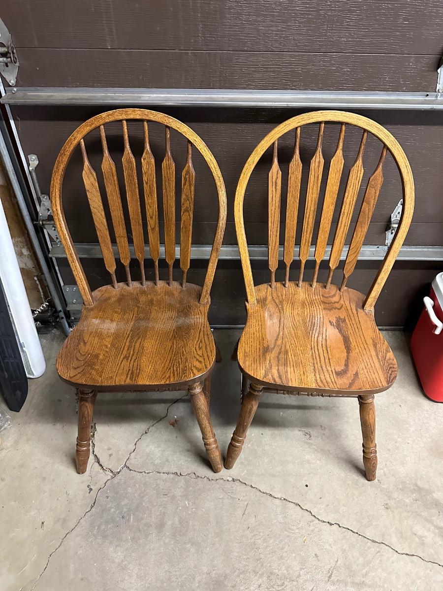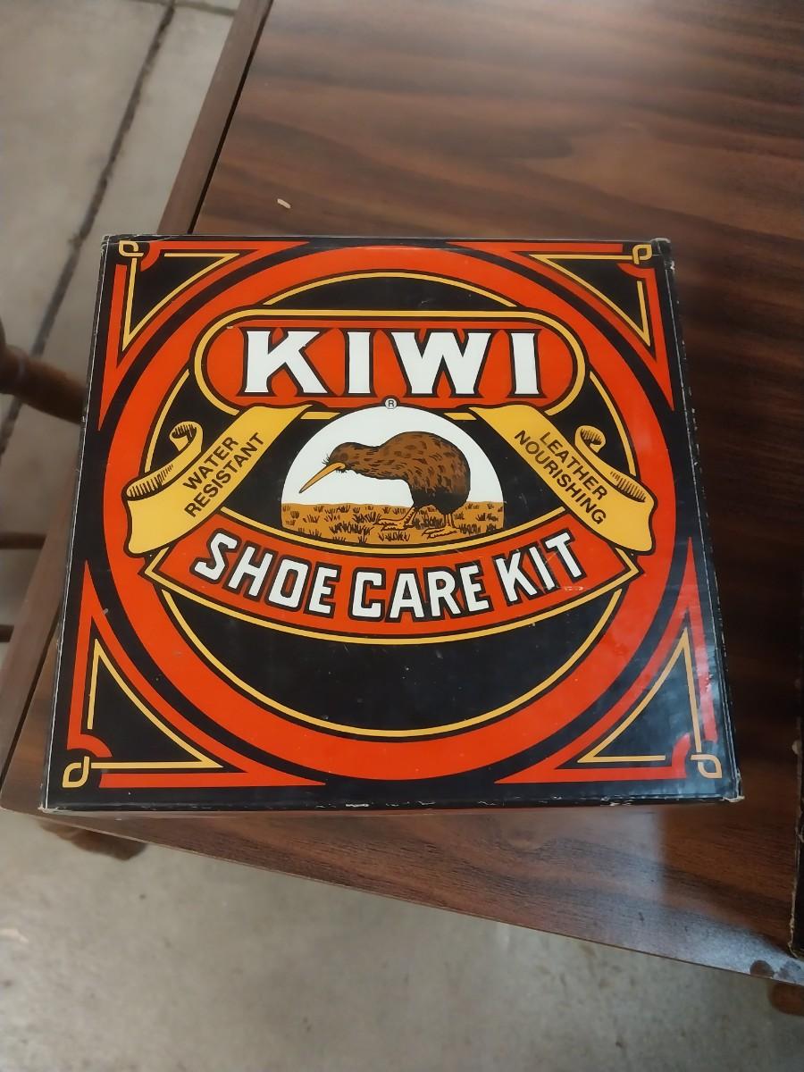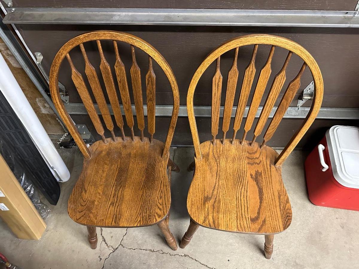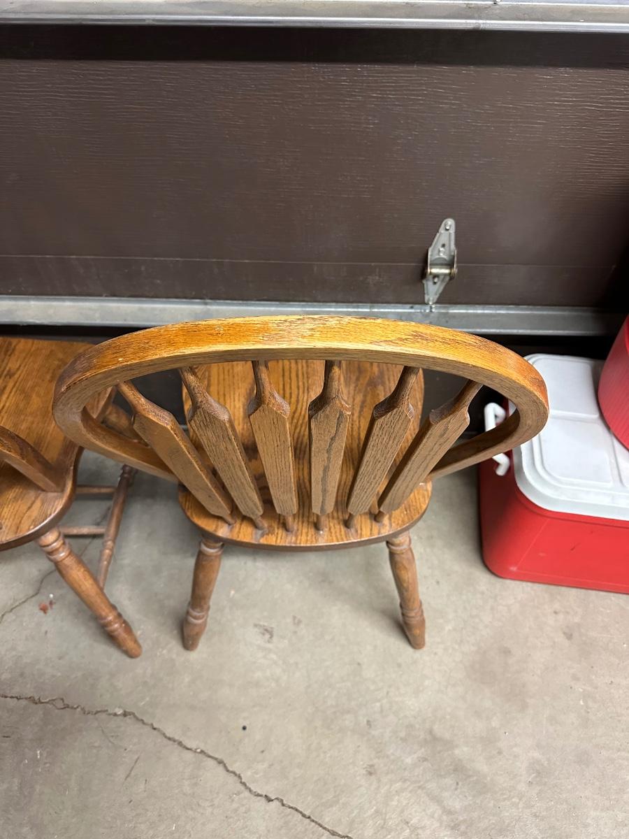 DROP LEAF TABLE ON WHEELS, 2 OAK CHAIRS AND SHOE POLISH