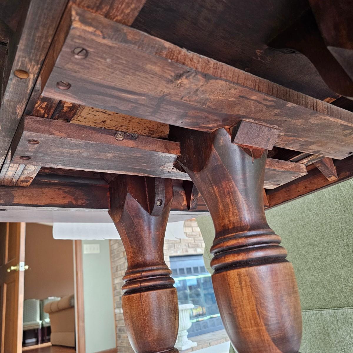 Lot includes a triple pedestal drop leaf table with brass capped claw feet. Table measures 56” x 36” x 30”H when open and 27.5” x 36” x 30”H with leaves dropped. There is no removable leaf included. Table top has fading, see pictures.