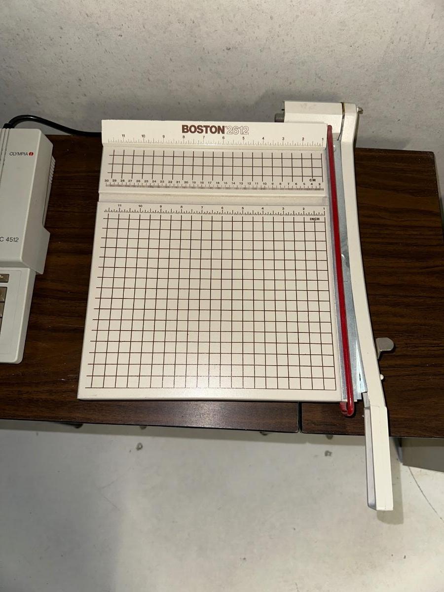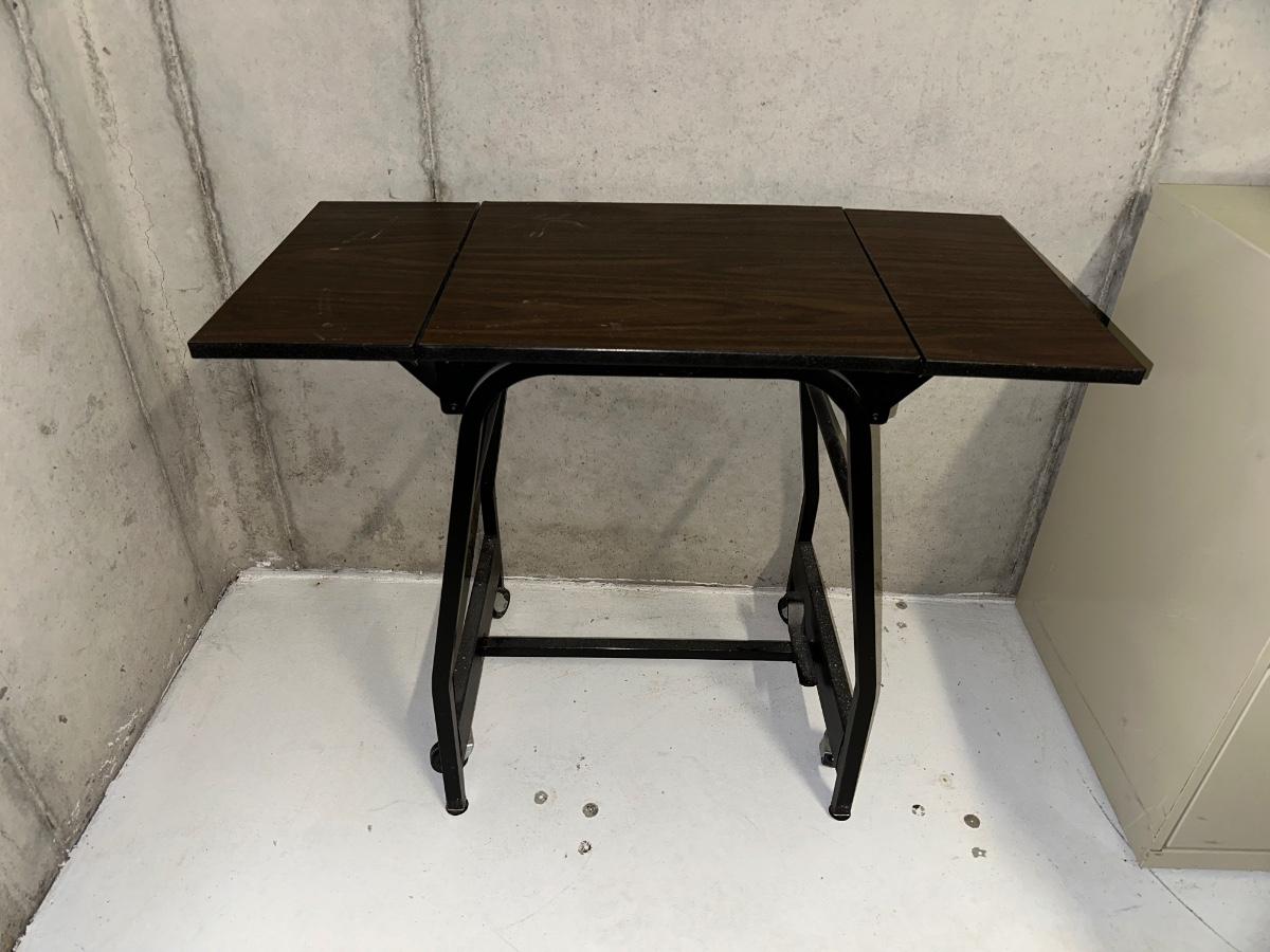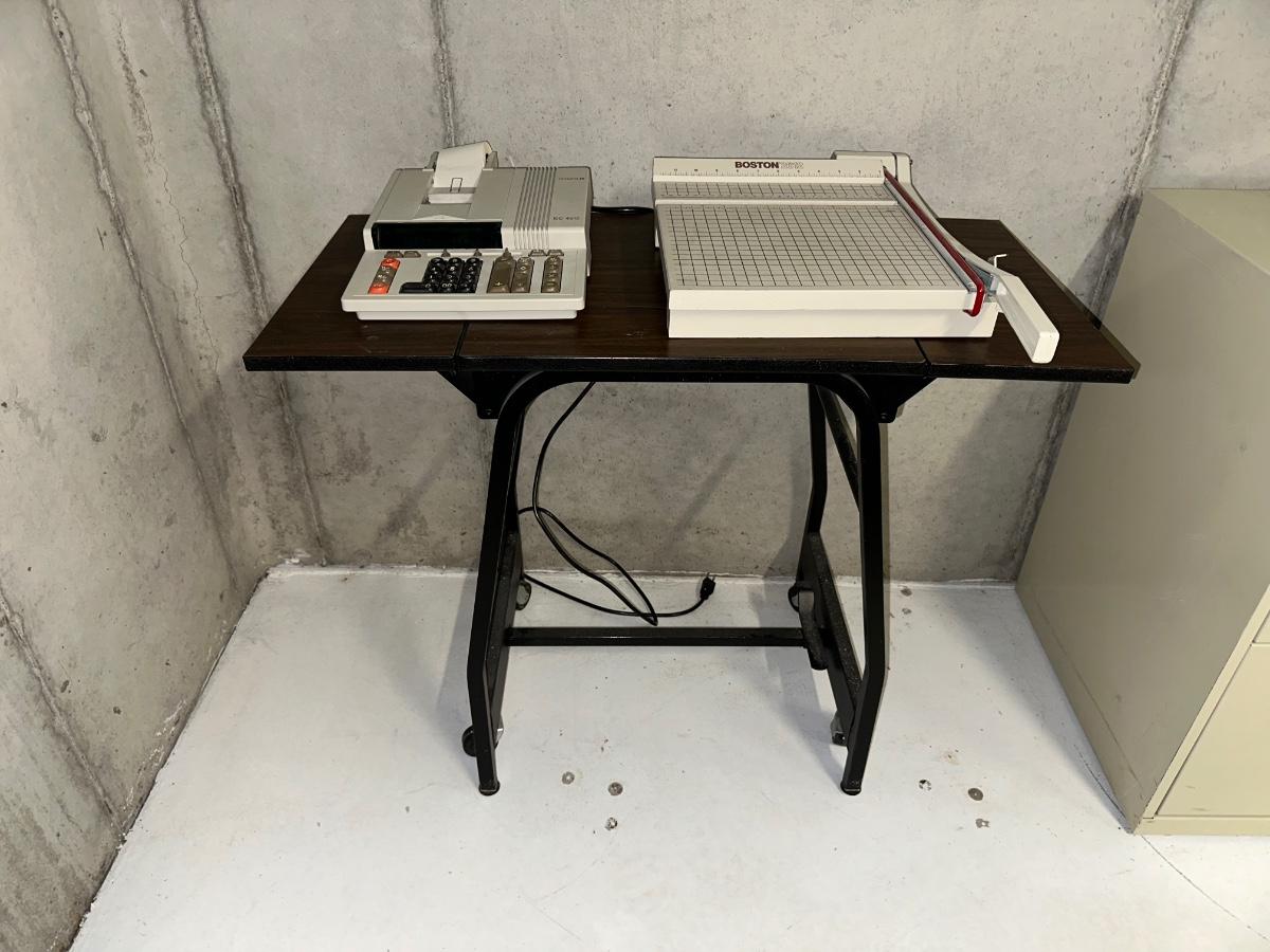 DROP LEAF TYPEWRITER TABLE WITH CALCULATOR AND PAPER CUTTER
