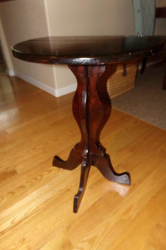 Solid wood and measures 18" round x 26"H VG condition