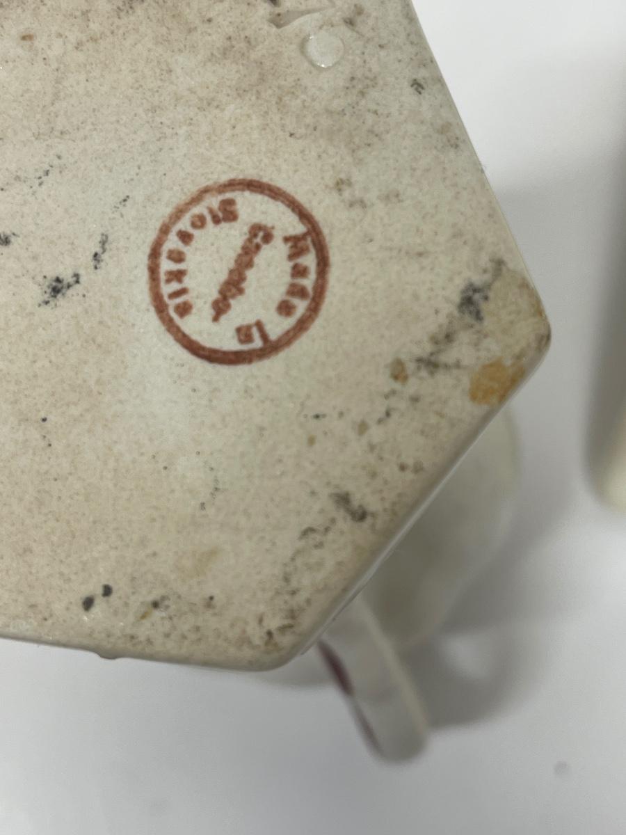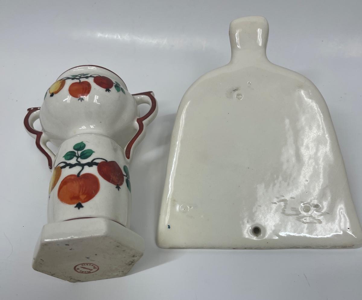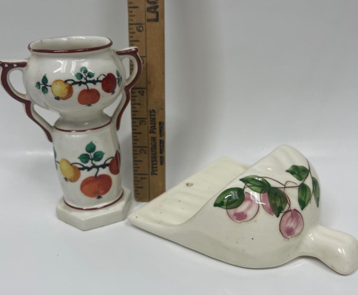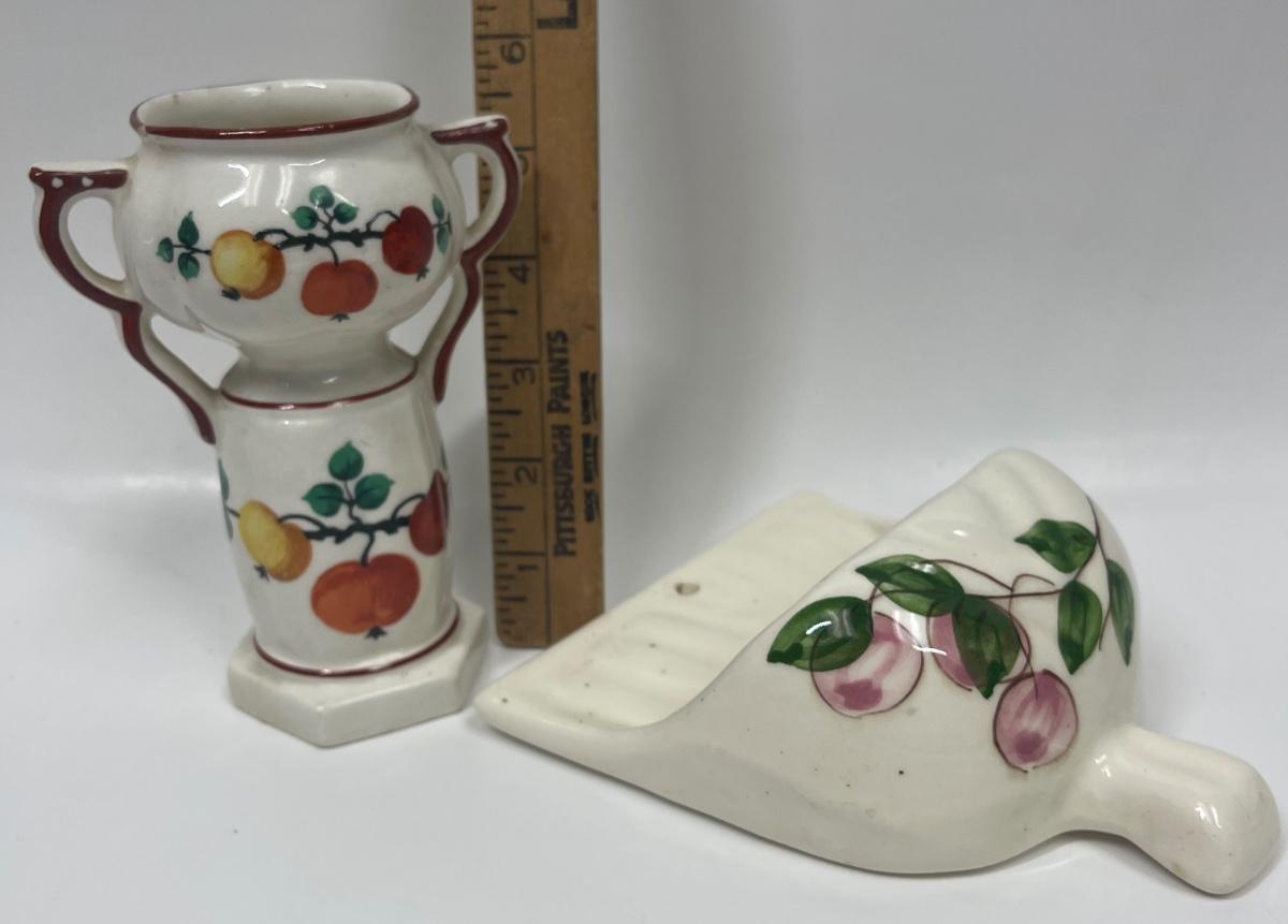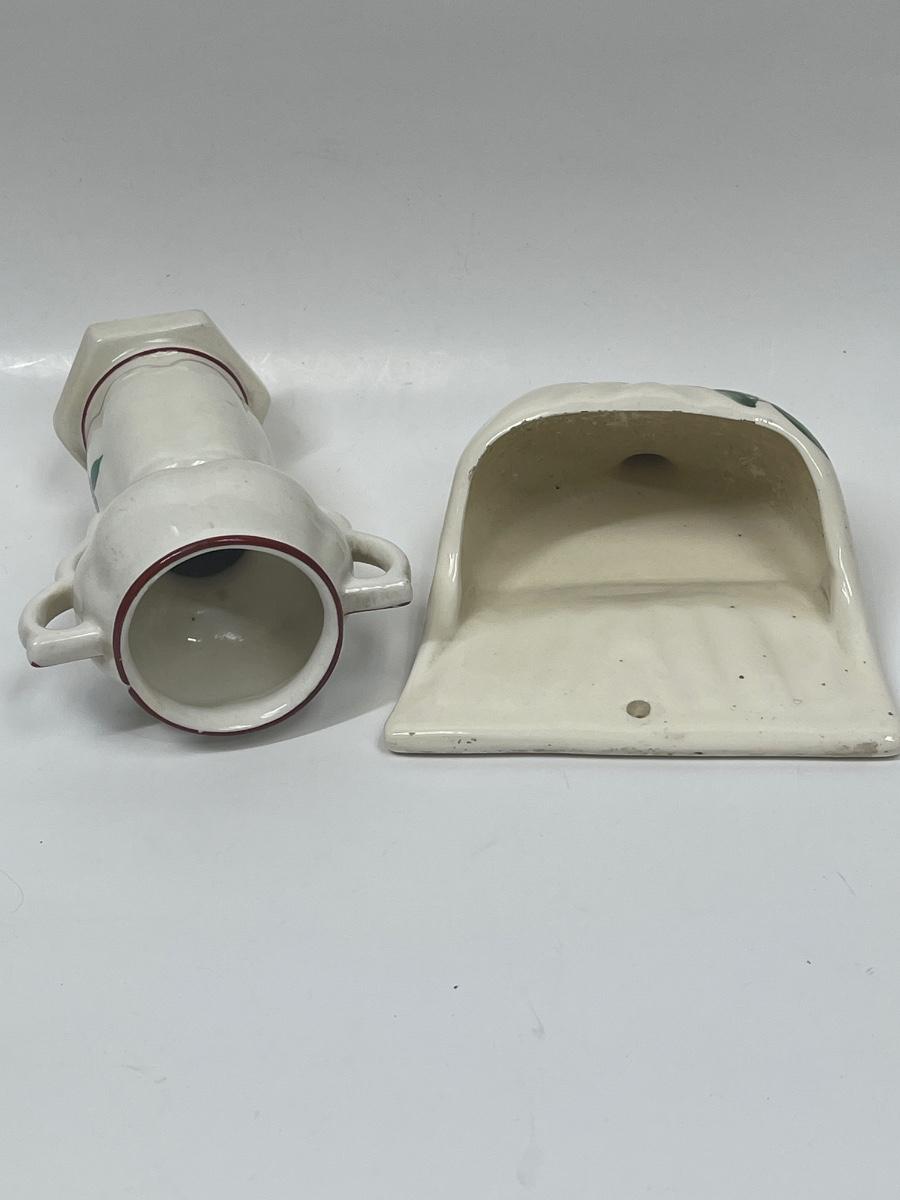 Wall-mounted sconce for a floral display, and a ceramic vase with handles made in Slovakia. Both in good condition.