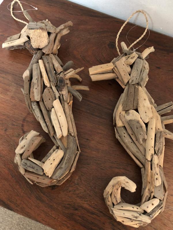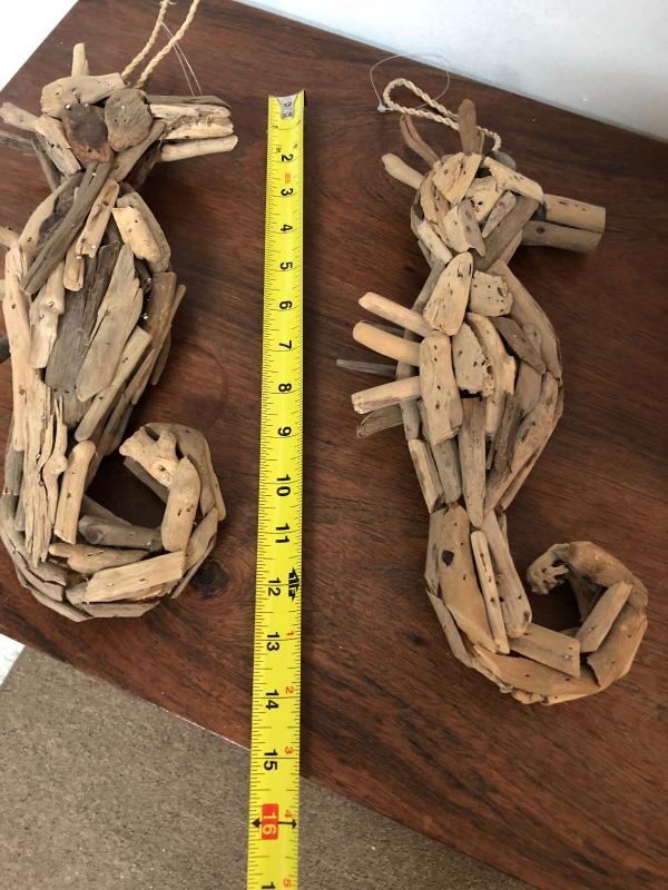 Seahorses made from drift wood 13" tall. If you need shipping please be aware that the cost of shipping may be more than what the item cost. All items ship from zip code 84109, you can go to USPS.com for estimates of cost.