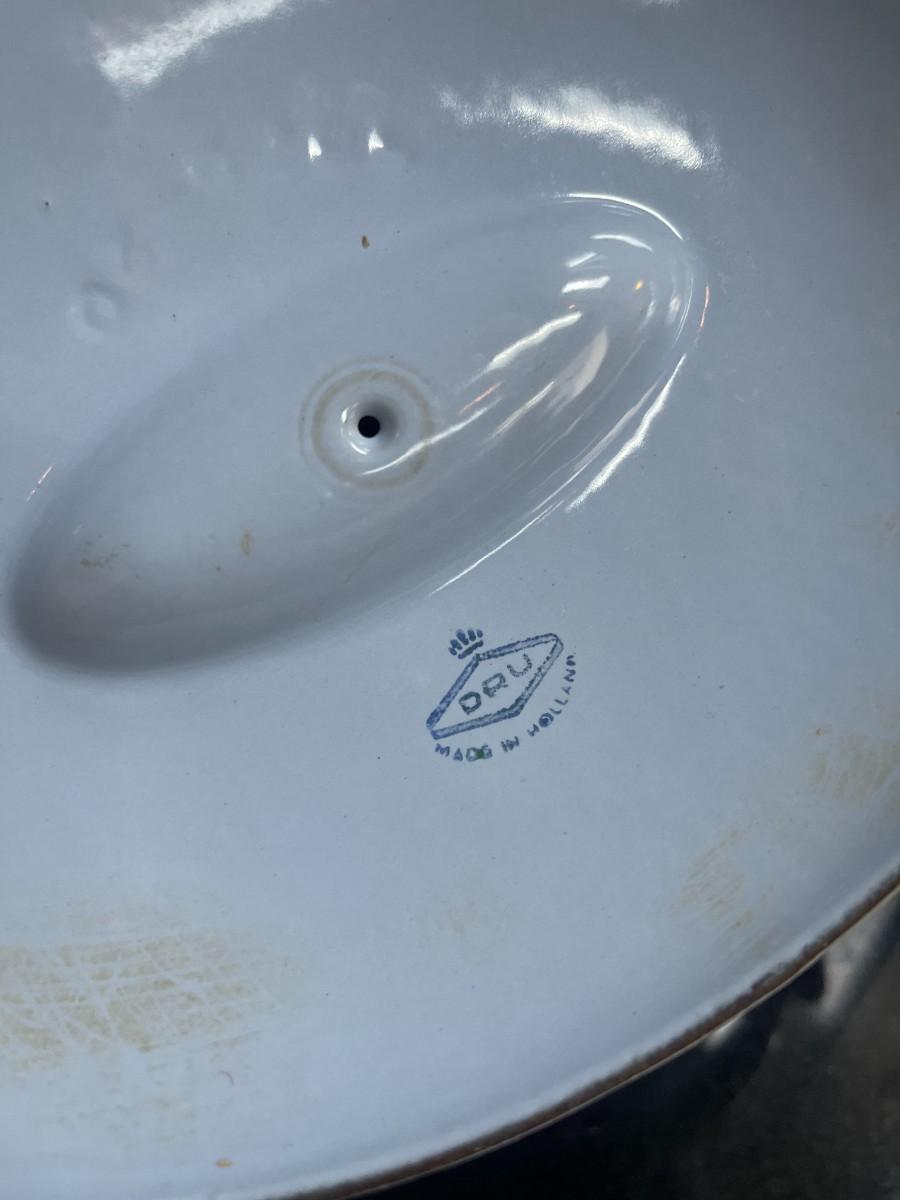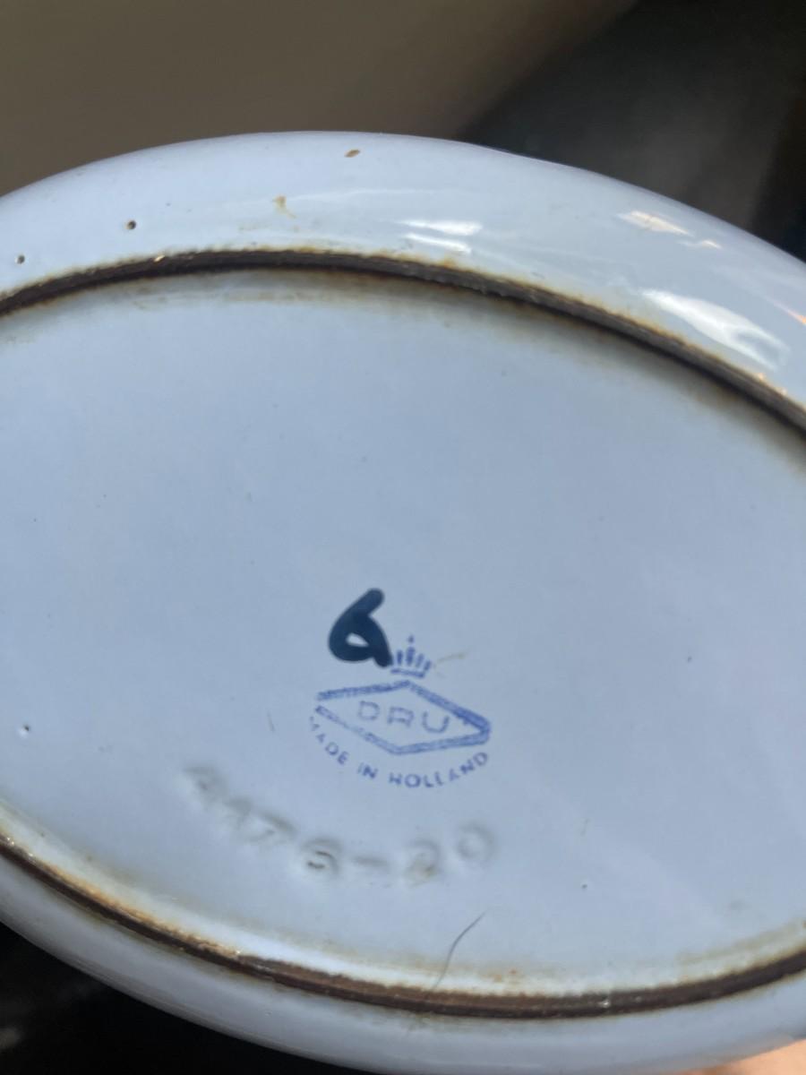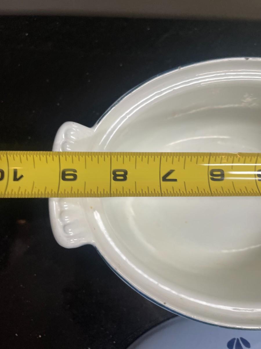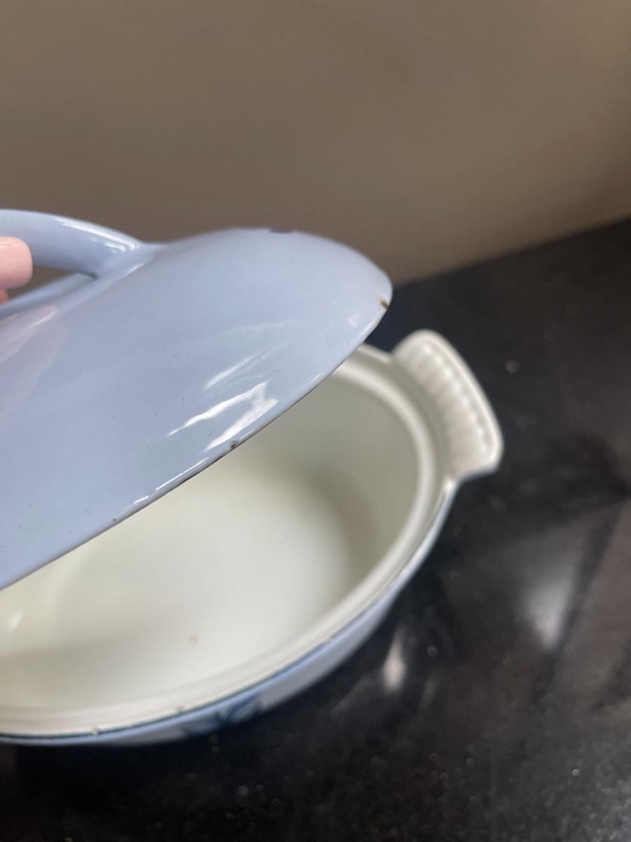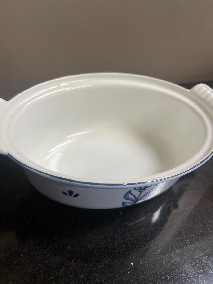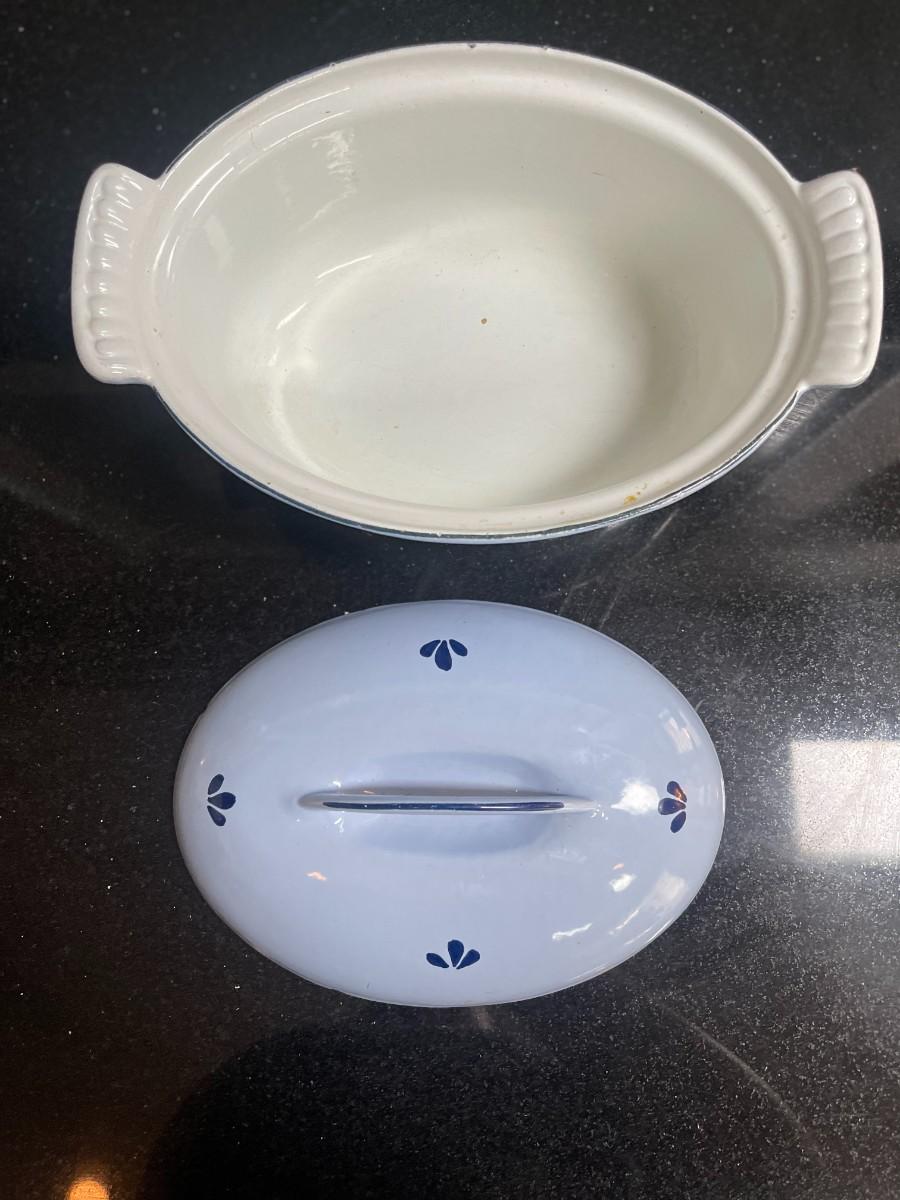 Dru Holland Enamel Cast Iron Blue Tulip Covered Casserole