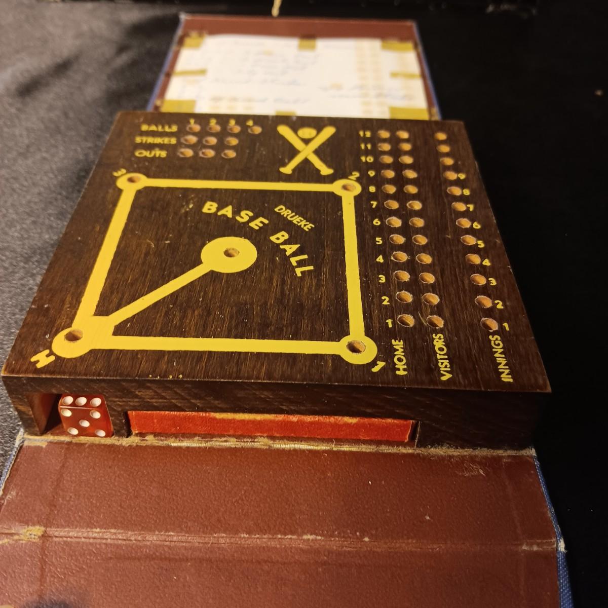 DRUEKE BASEBALL CRIBBAGE TYPE GAME AND A LOCKING METAL BOX