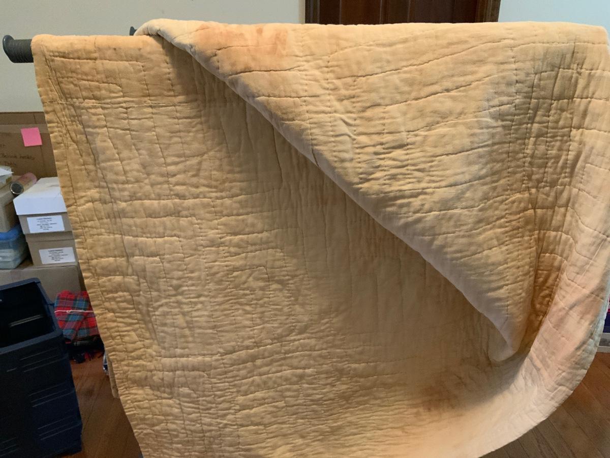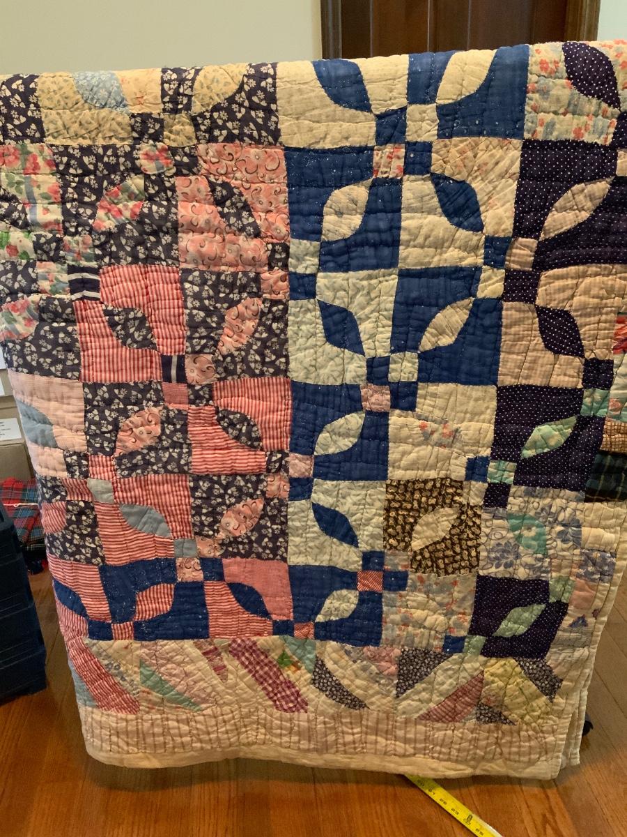 Drunkard’s Path block patterned Vintage Quilt 70” x 67”.. please note this quilt is very stained.