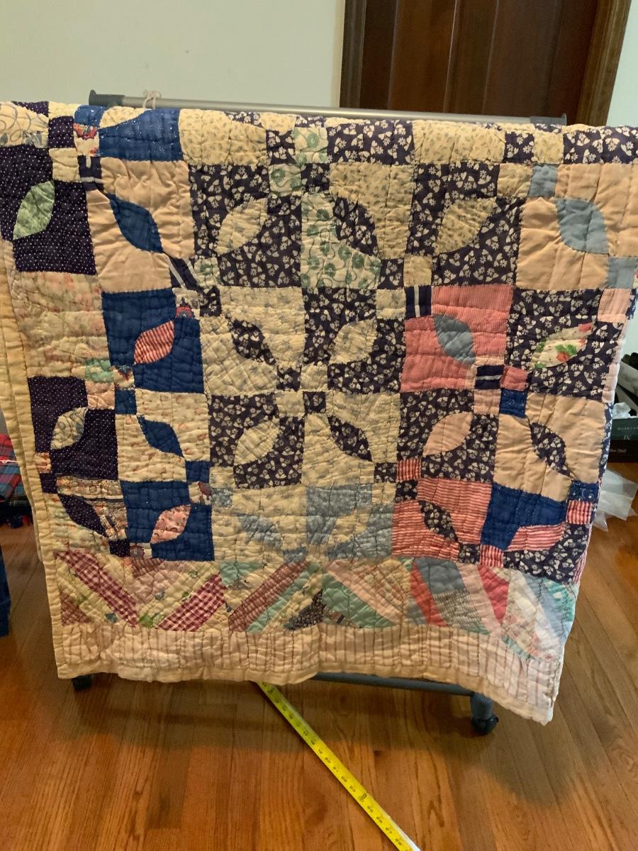 Drunkard’s Path block patterned Vintage Quilt 70” x 67”