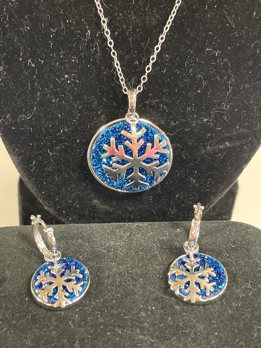 Both necklace and earrings the snowflake can be removed
