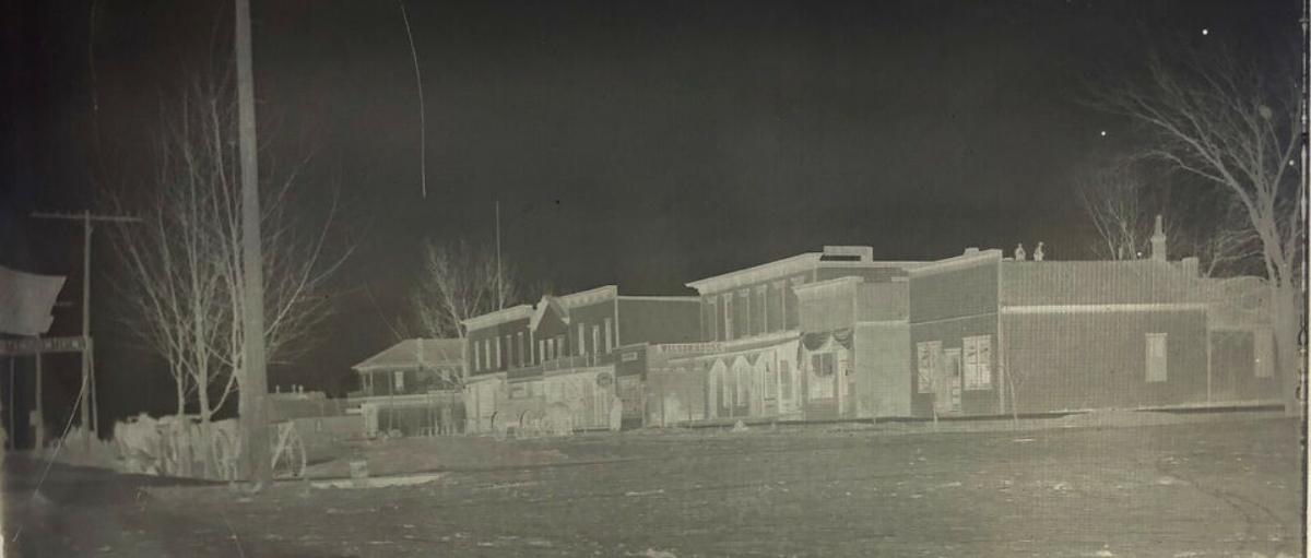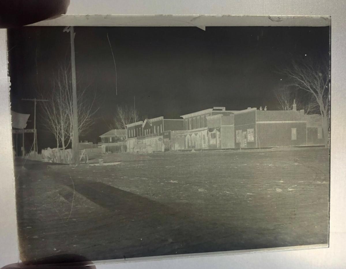antique dry plate negative that we came across at a recent estate sale..Credited to a Fred K. Main who shot in Iowa and California circa 1904...Possibly taken in Fremont, Ohio?..Street signage reads WILSON HOUSE...FAVORITE BICYCLES...NEWS MESSENGER...Horse drawn traffic...4.25 x 3.25".