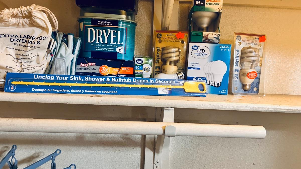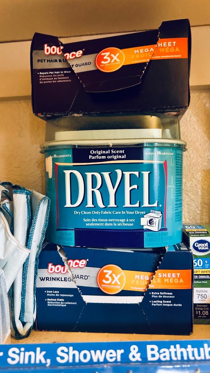 DRYEL DRY CLEANING AT HOME KIT, AN ASSORTMENT OF LIGHT BULBS, HANGING CLOTHES LINE AND MORE!