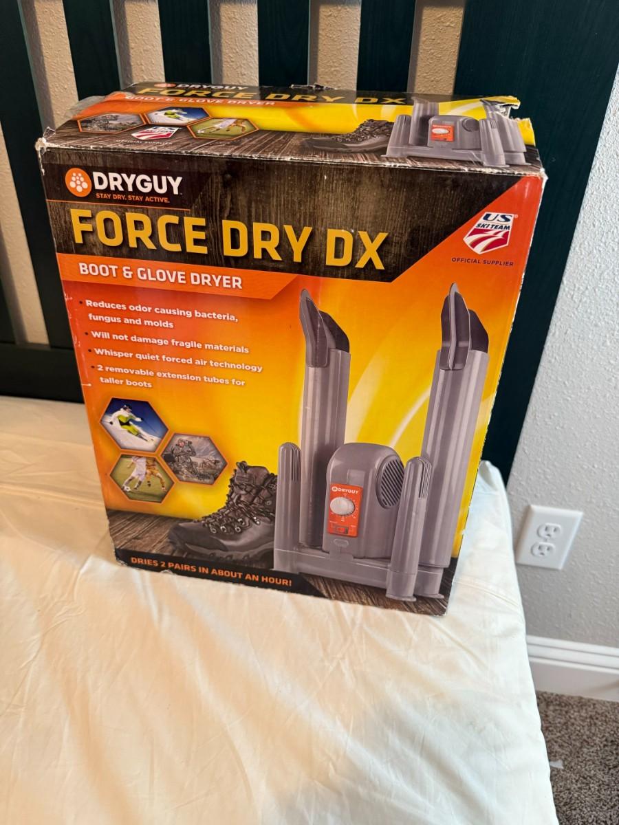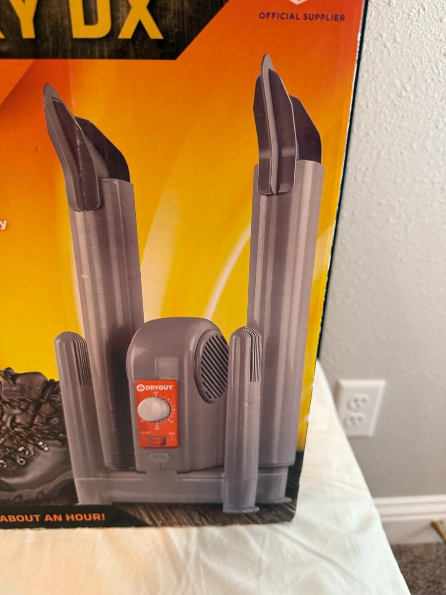 Fast and quiet dryer for boots and gloves. Dries up to two pairs in about an hour. Features whisper-quiet forced air tech and extension tub