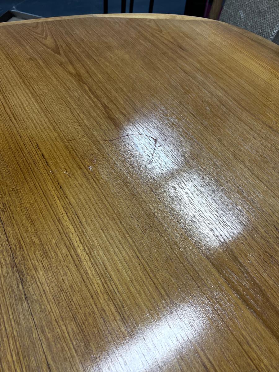 Fai condition some sun fading could use some oil!! See photos for dimensions. Some surface scratches on table, noting major.