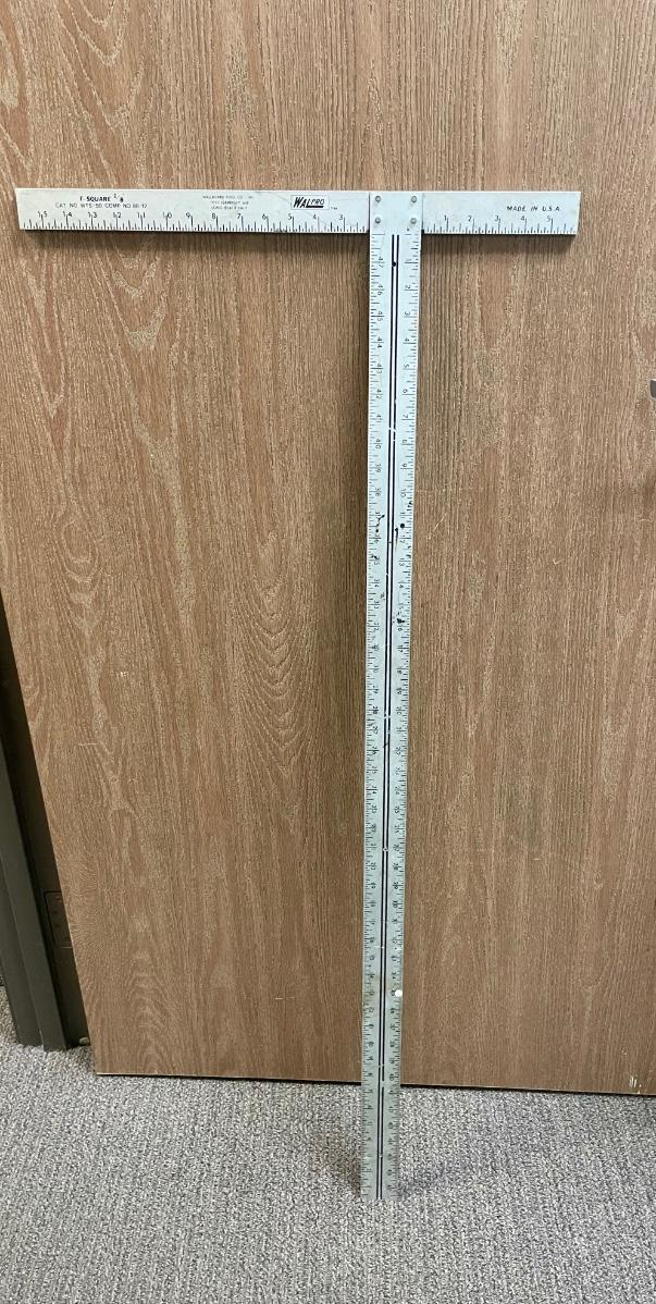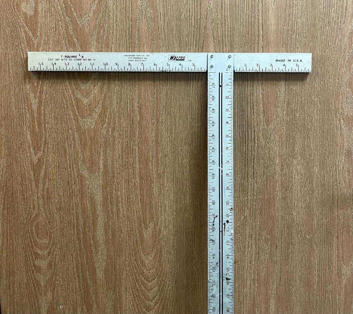 Drywall T-Square 1/8" thick, made from aluminum. From the Wallboard Tool Company, Long Beach, CA. Very clean, great used condition.