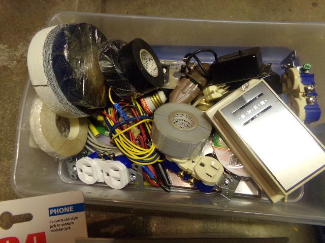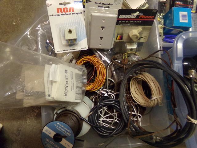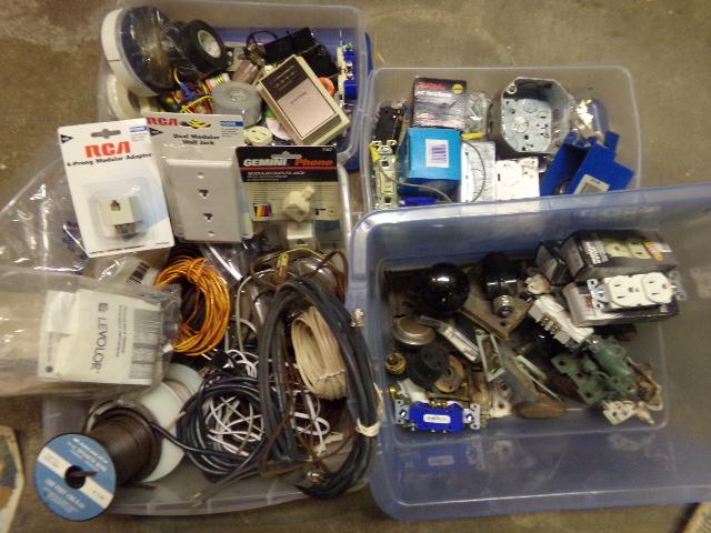 OUTLETS, LIGHT SWITCHES, GANG BOXES FOR OUTLET/LIGHT SWITCH, WIRES, AND TELEPHONE HARDWARE SOME ARE NEW.
