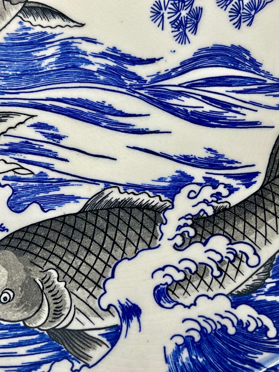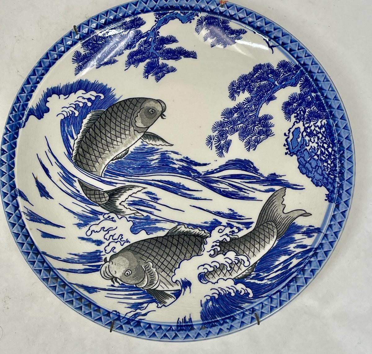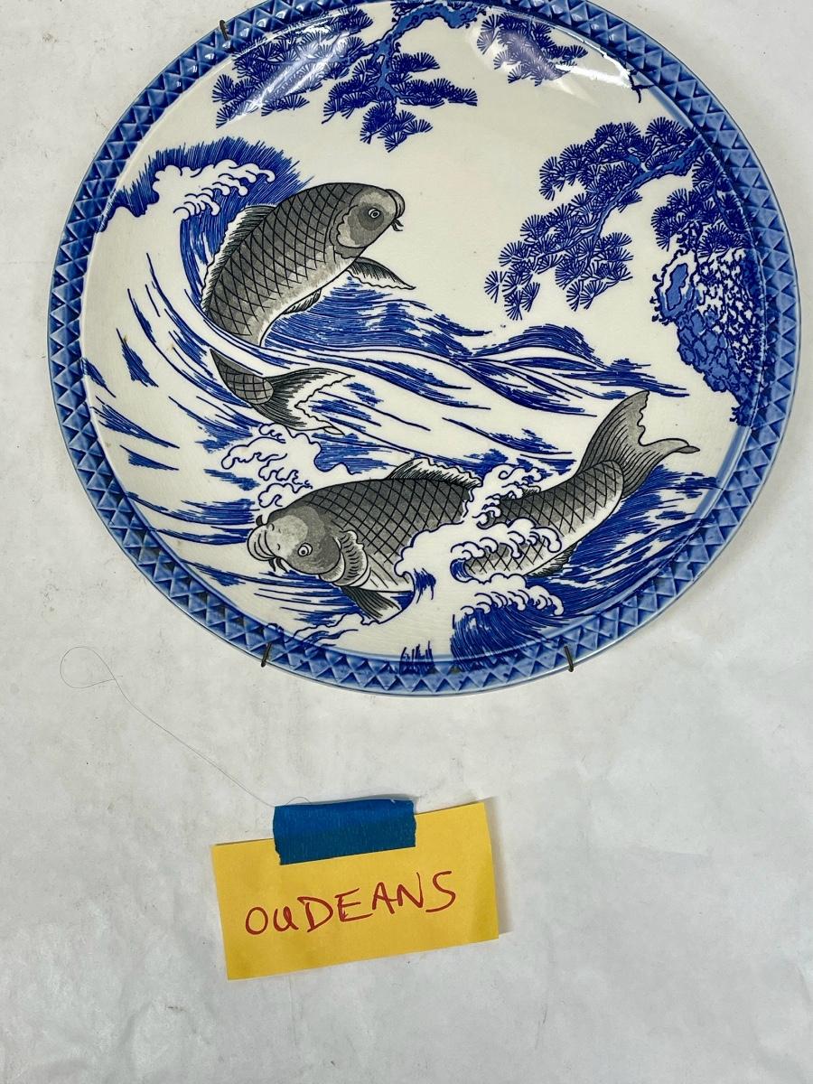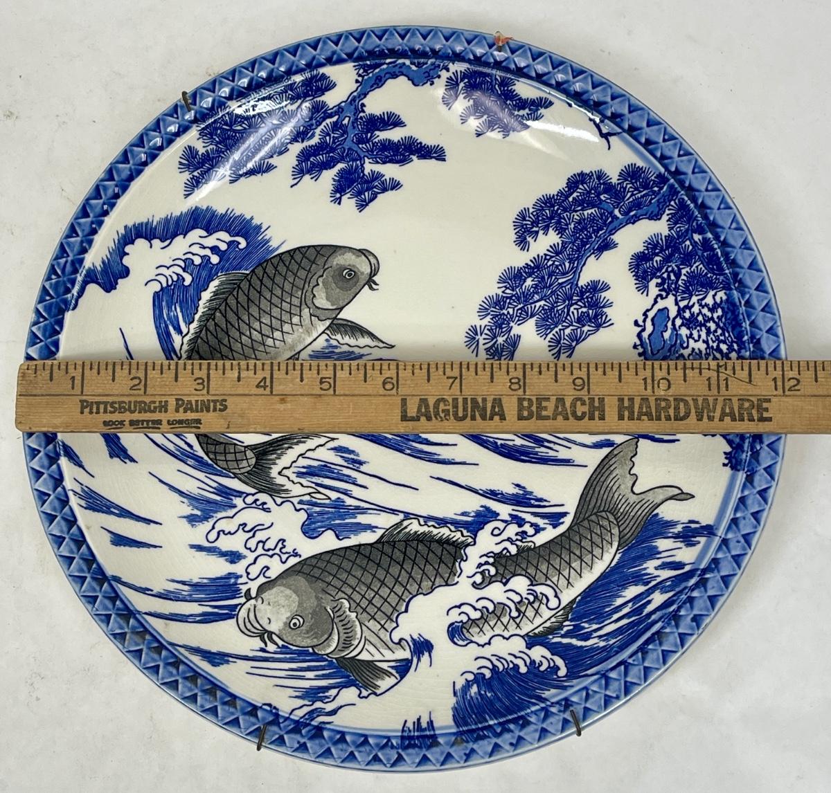 Blue and White Chinese Porcelain 12” Plate Platter with Koi Fish