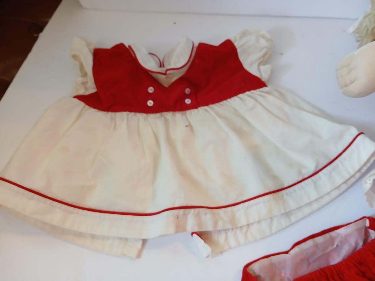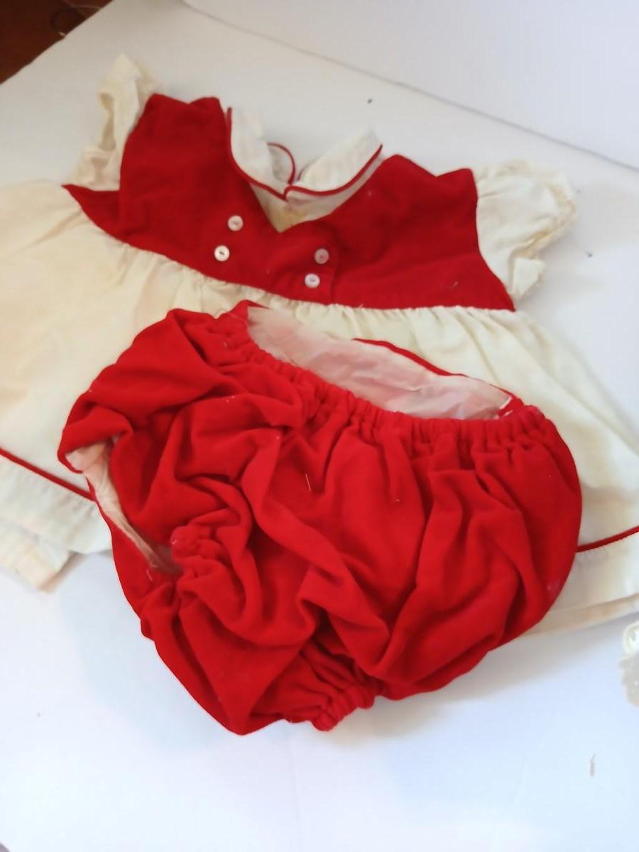 Extra: Red corduroy and white cotton dress with bloomers (light staining visible)
