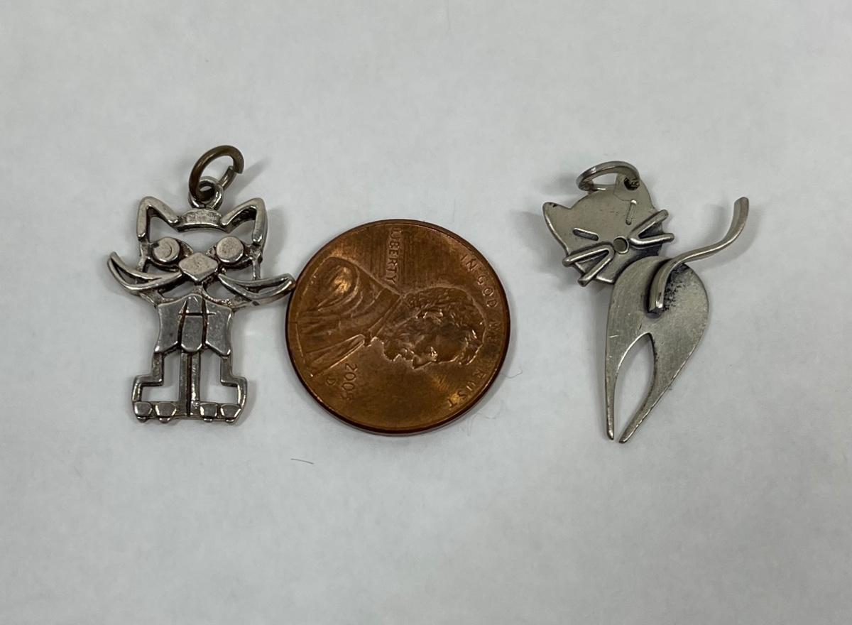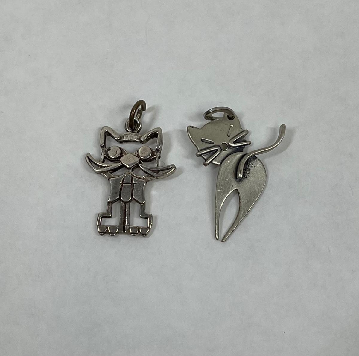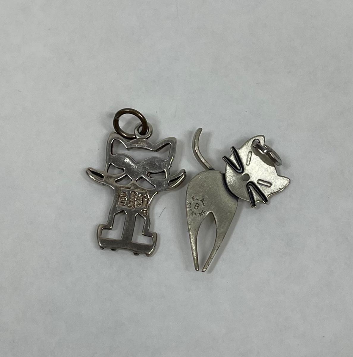 Vintage Sterling 925 Silver Cat Pendants or Charms