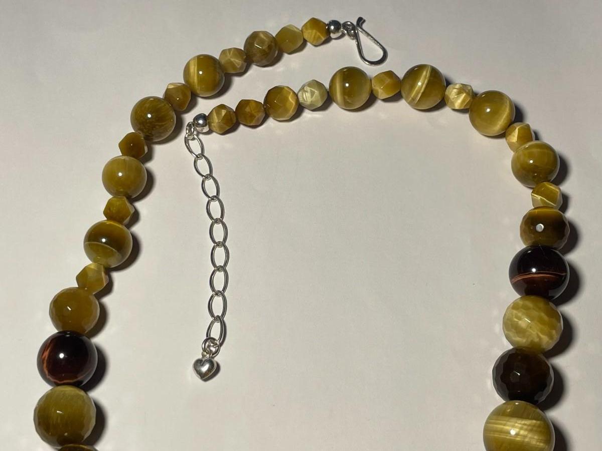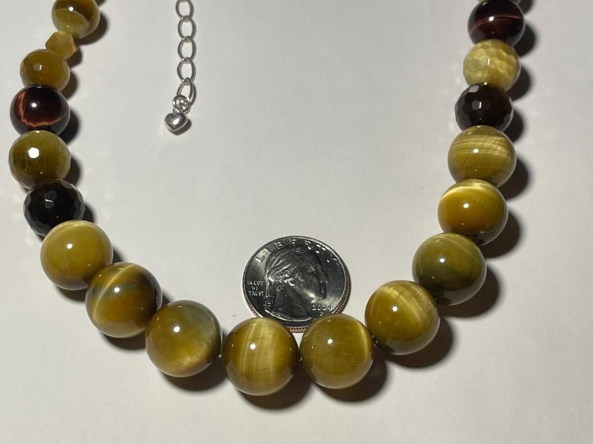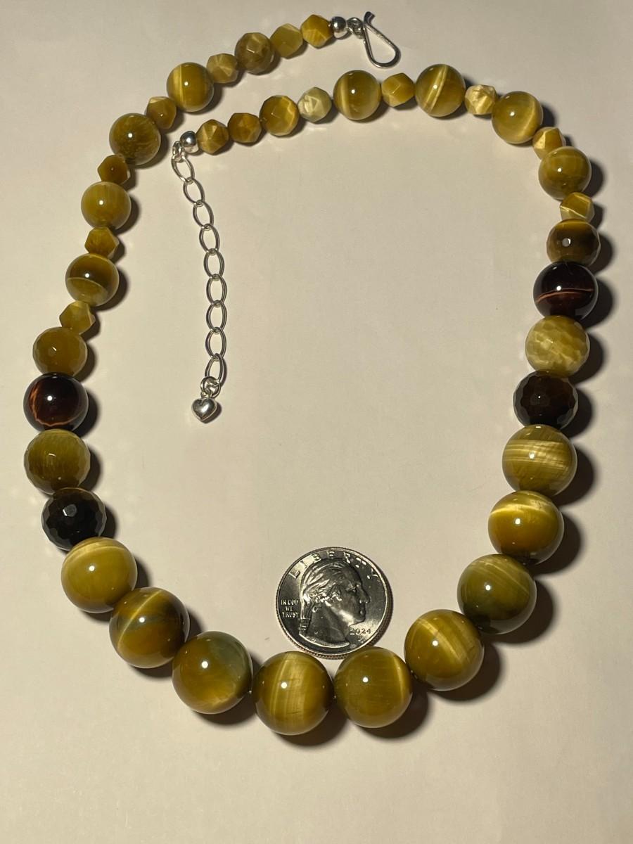 DTR/Jay King New Never Worn Tiger's Eye Large Bead Graduated Necklace 20-23" Adjustable w/Sterling Silver Clasp & Chain as Pictured.