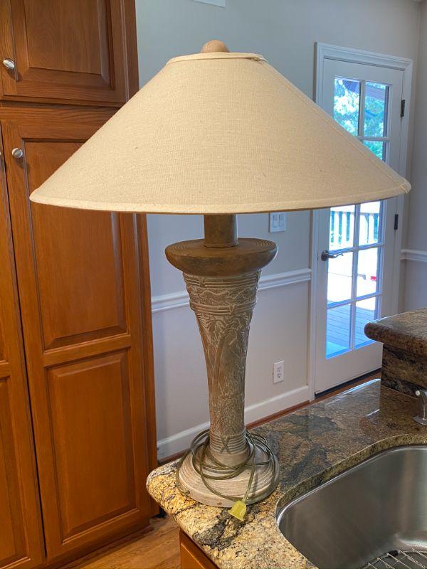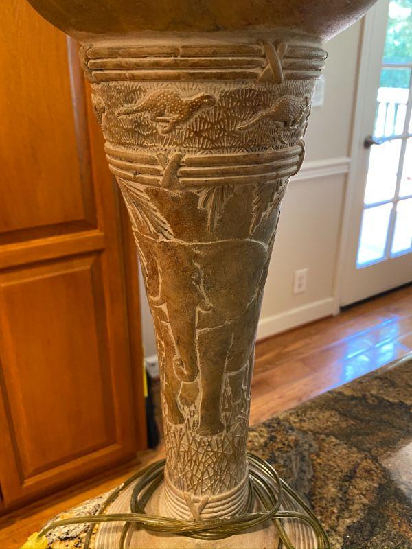 Safari animal design table lamp. Features cheetahs and an elephant. Has dual bulb lighting. Good Condition. May be a little dusty.
