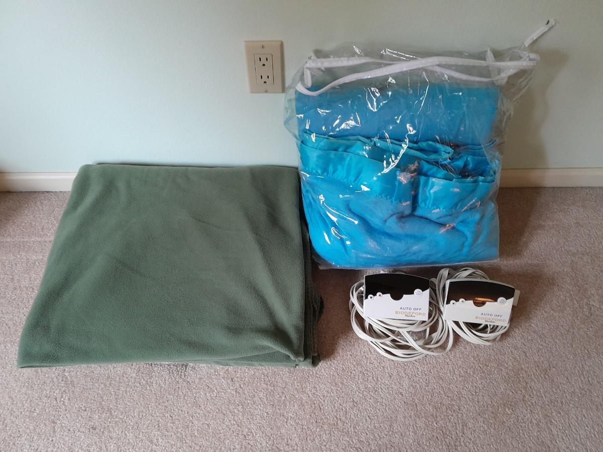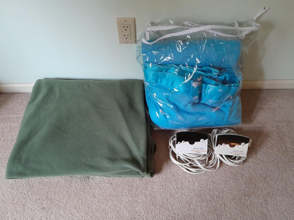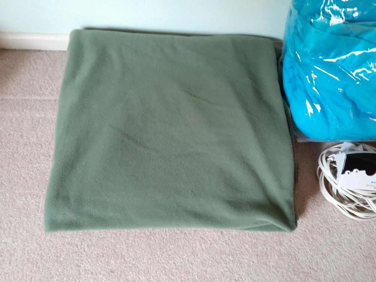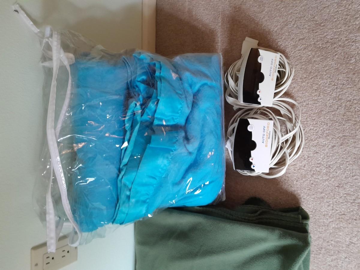DUAL CONTROLLED ELECTRIC BLANKET AND A LARGE GREEN BLANKET