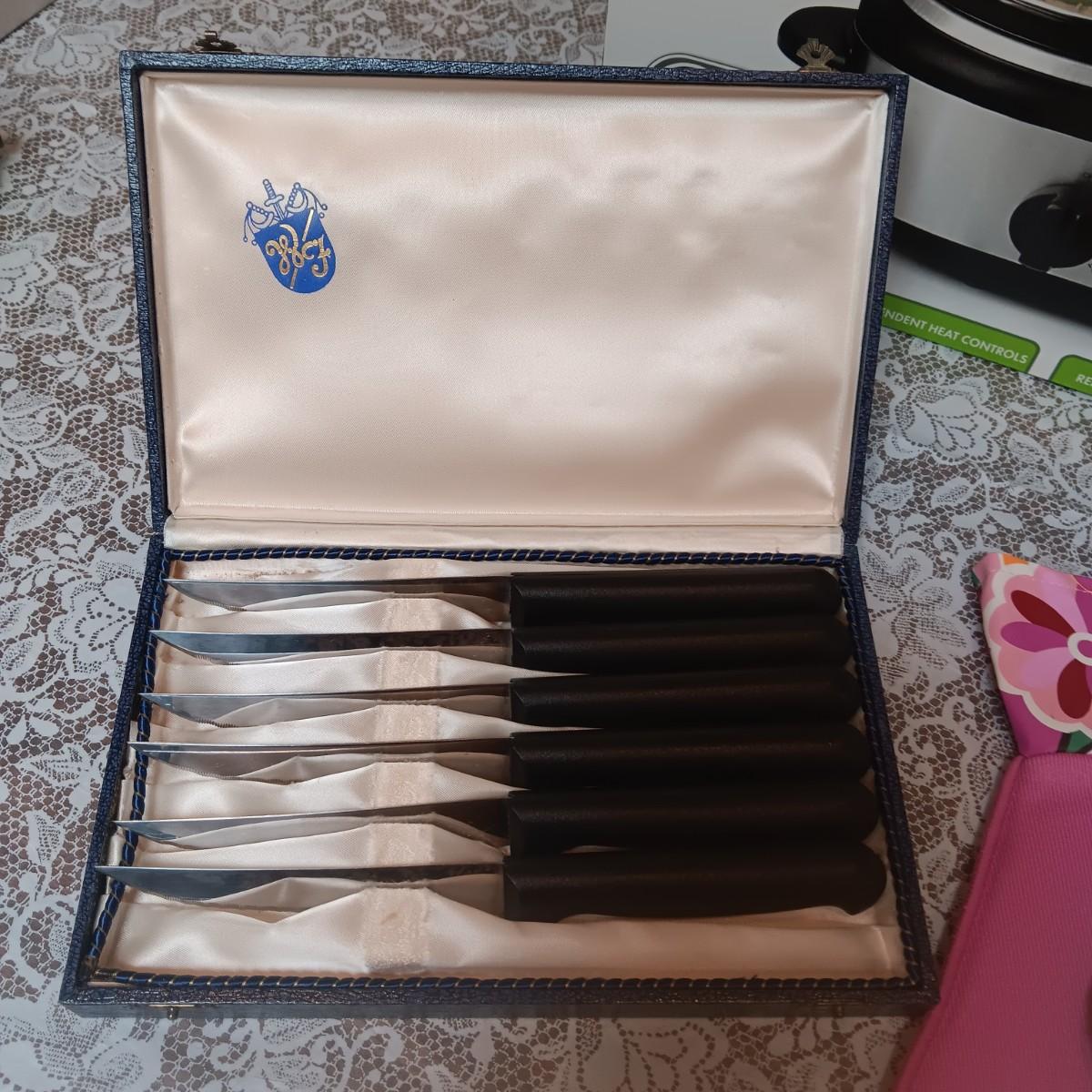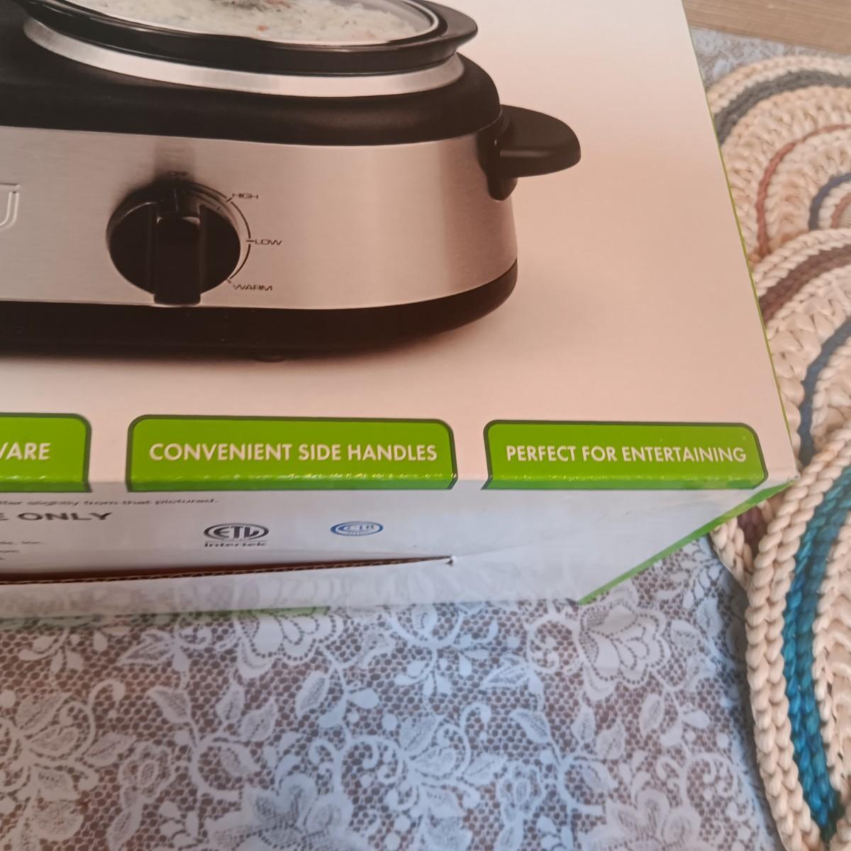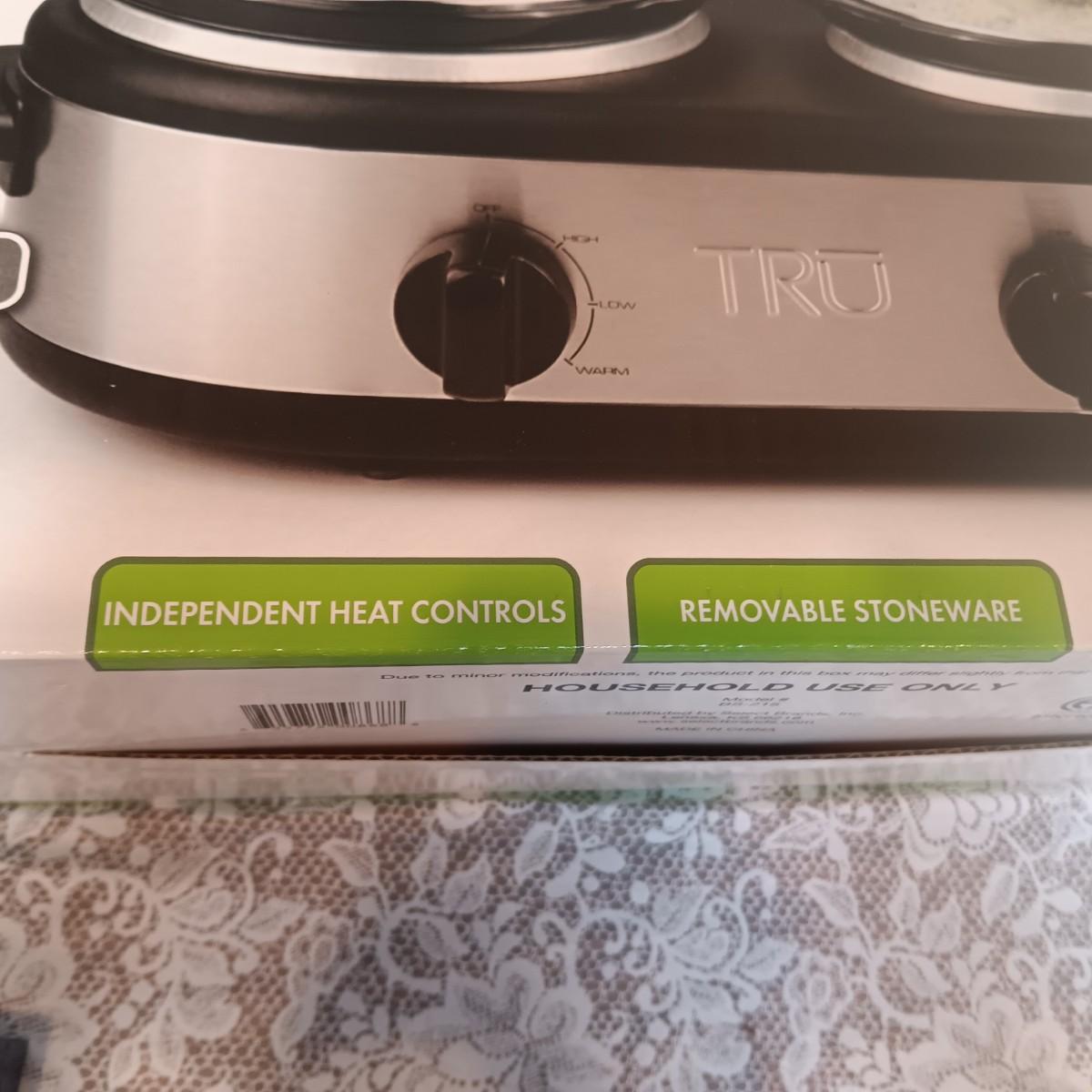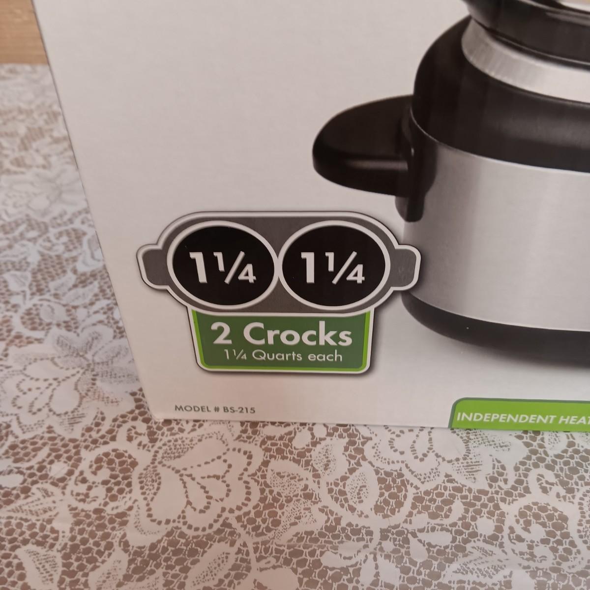 DUAL CROCK BUFFET SLOW COOKER, STEAK KNIVES, OVEN MITS AND HOT PADS
