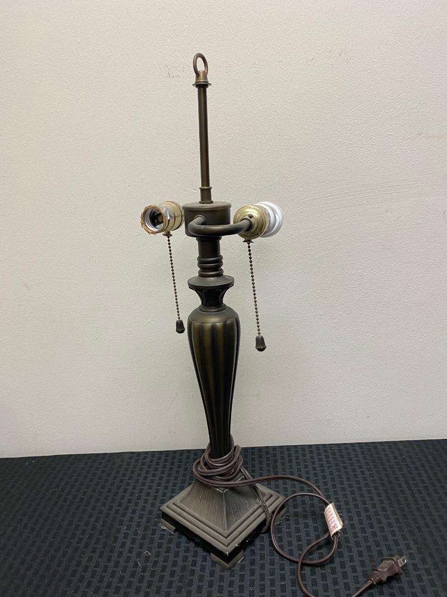Dual light lamp base. Pull chain on off for each bulb. No Shade. About 22" height.