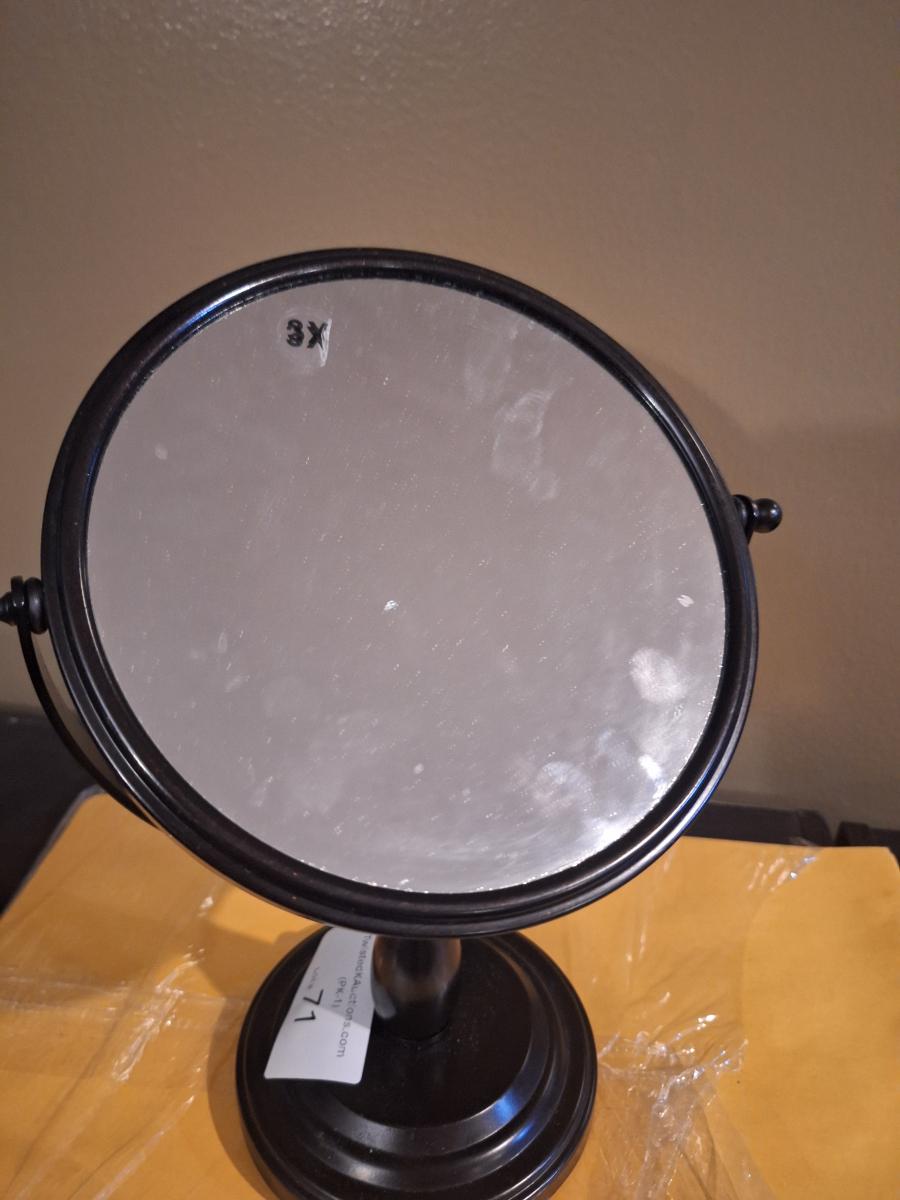 dual-magnification swivel vanity mirror  one side has 3x magnifaction.