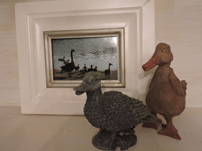 Cute collection for the duck lover! A framed photograph of a duck with her chicks along with two duck figurines. 4”x6” photo in a 9.5”x11.5” frame, and the ducks are 6” and 5”.