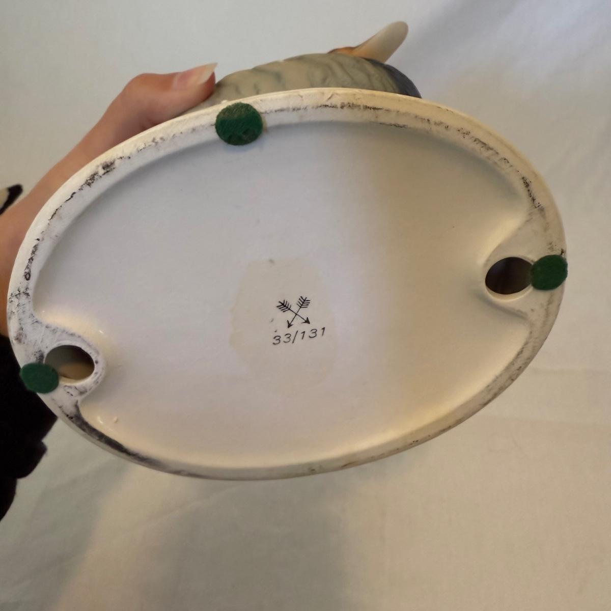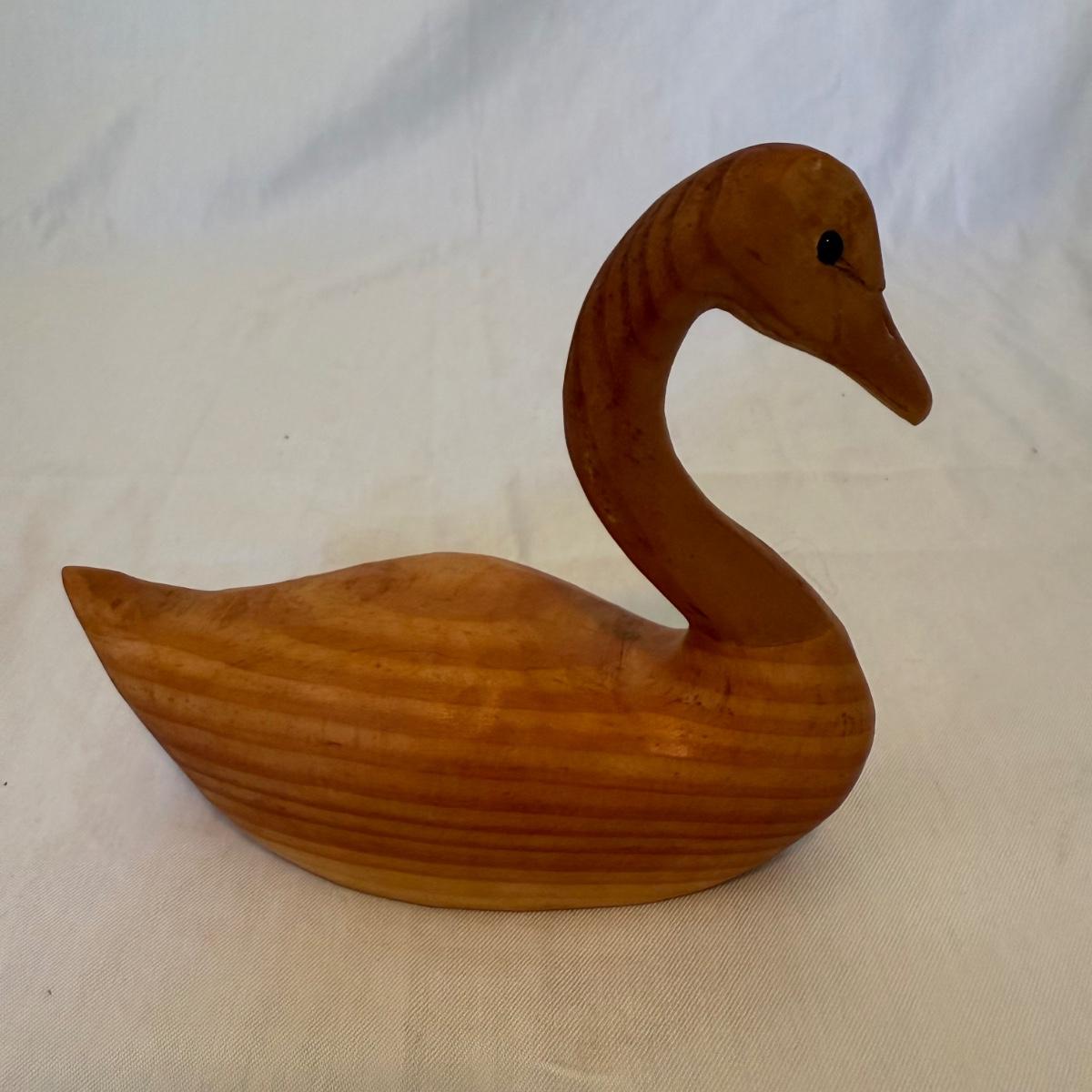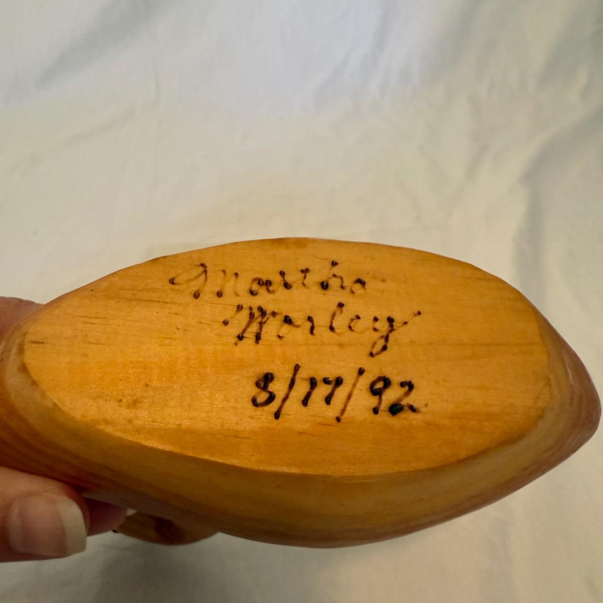 This lot contains six different duck or geese figurines! The first two patch and are ceramic ducks, one a mallard and with a yellow head. The yellow head mallard has some chipping in the glaze at the base, see pictures for details. They both measure 5.5” x 4.5” x 8.5”H and both numbered 33/131 on the bottom. Next is a precious but plain carved wooden duck. Next is a hand painted wooden mallard, see pictures for signature. Moving on we have a canadian goose whose half need-point and half painted fabric. This guys pretty heavy, he’s stuffed with something. And last a teeny resin duck figurine with a red head. This piece measures 3” x 1.5” x 1.5”H. Shipping available.