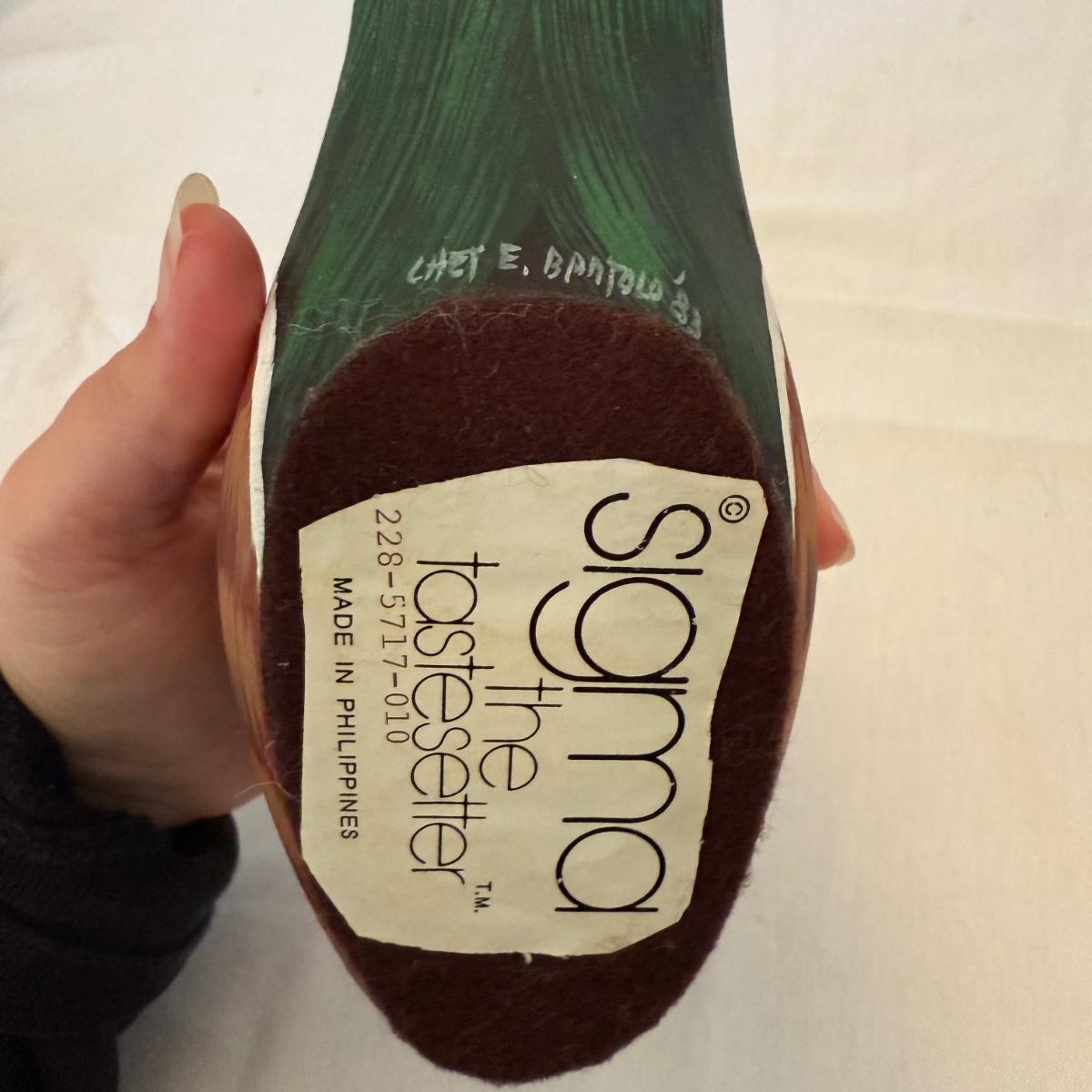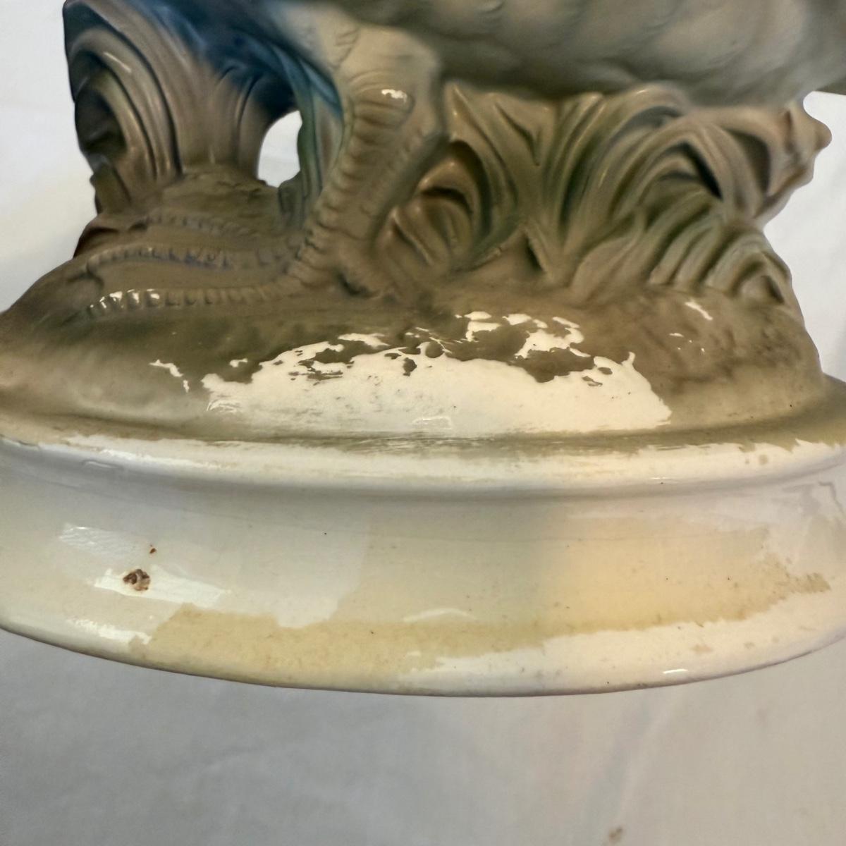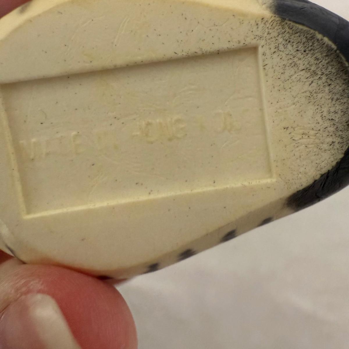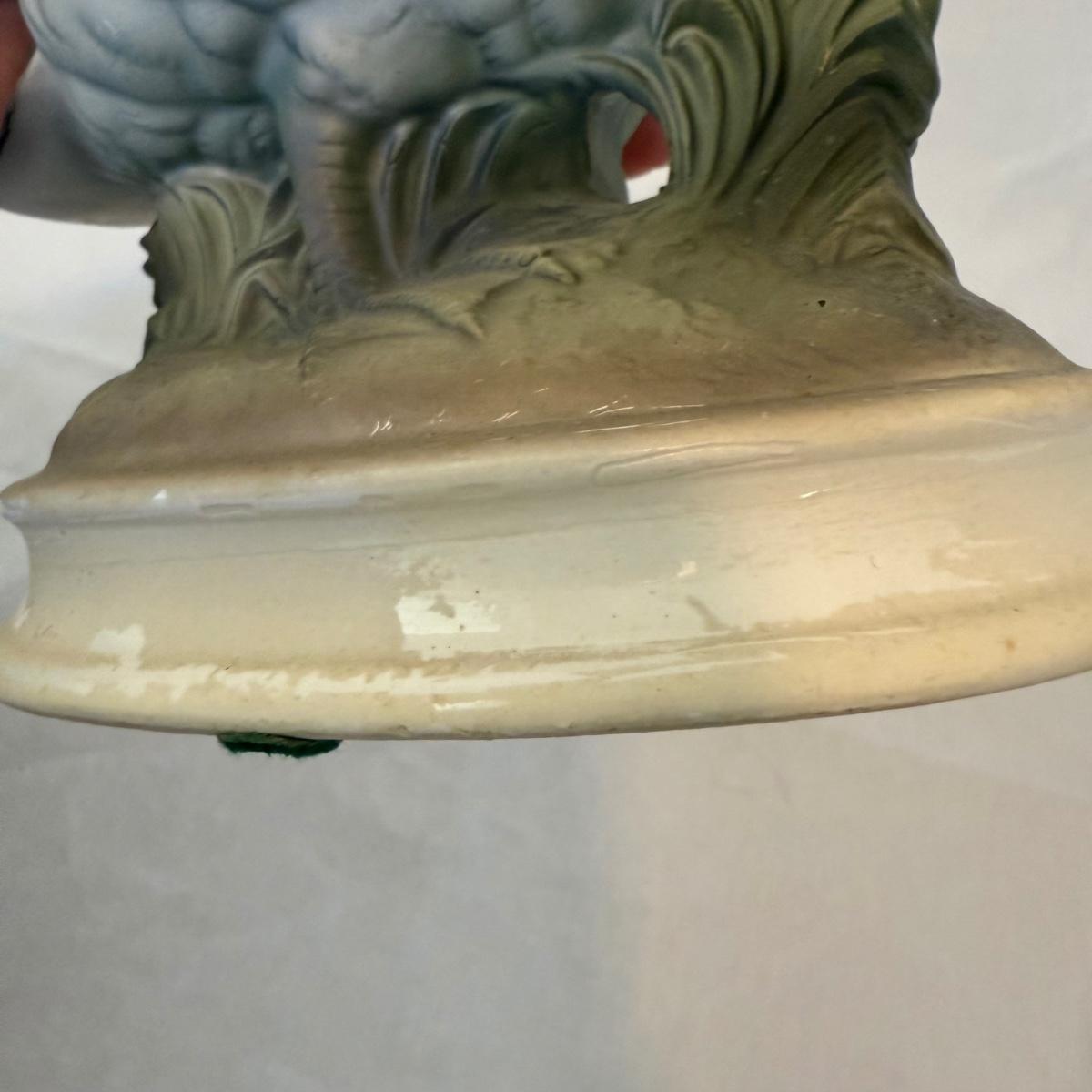 This lot contains six different duck or geese figurines! The first two patch and are ceramic ducks, one a mallard and with a yellow head. The yellow head mallard has some chipping in the glaze at the base, see pictures for details. They both measure 5.5” x 4.5” x 8.5”H and both numbered 33/131 on the bottom. Next is a precious but plain carved wooden duck. Next is a hand painted wooden mallard, see pictures for signature. Moving on we have a canadian goose whose half need-point and half painted fabric. This guys pretty heavy, he’s stuffed with something. And last a teeny resin duck figurine with a red head. This piece measures 3” x 1.5” x 1.5”H. Shipping available.