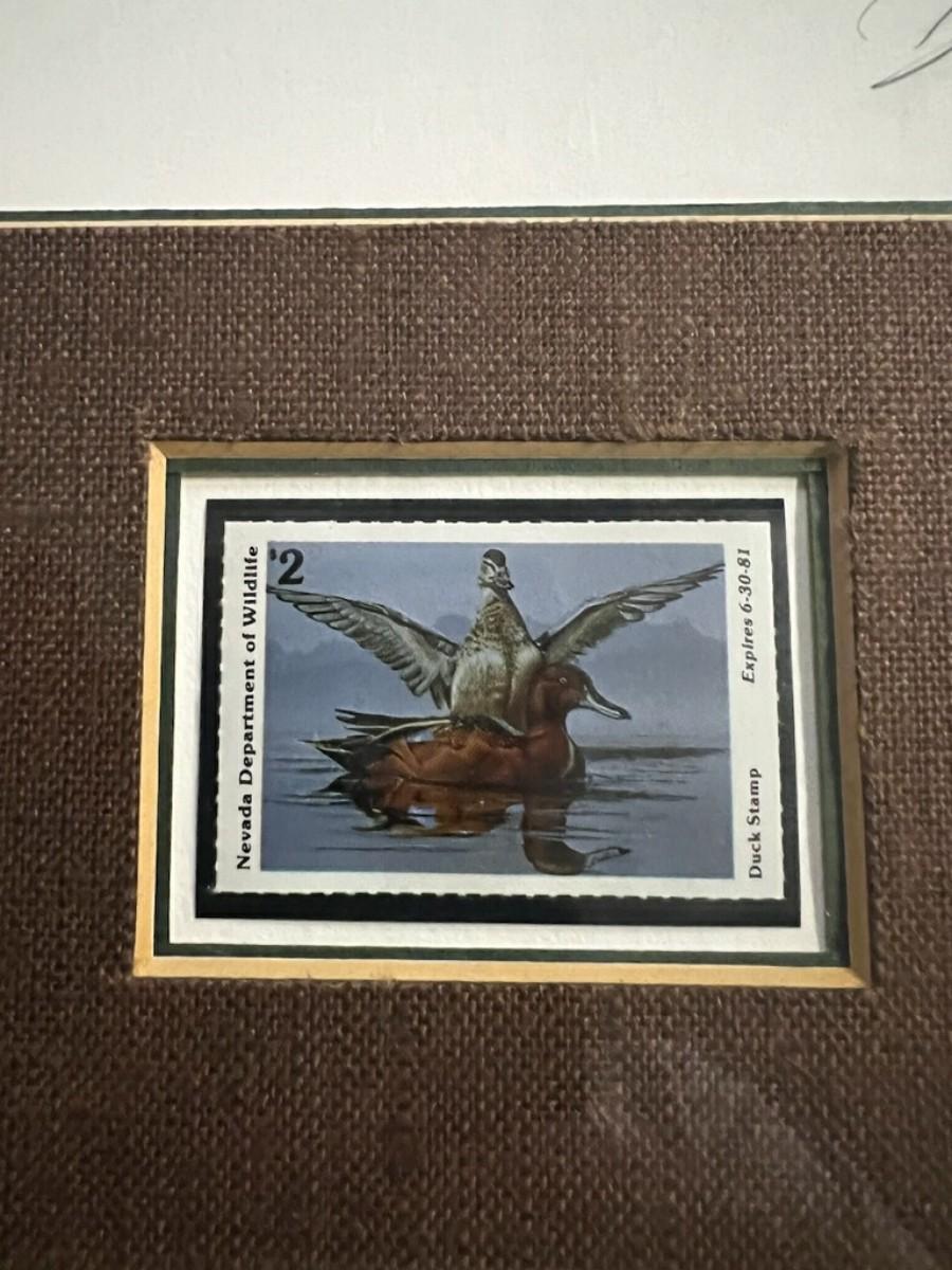Nevada Dept. of Wildlife Duck Print and Stamp, framed, matted.