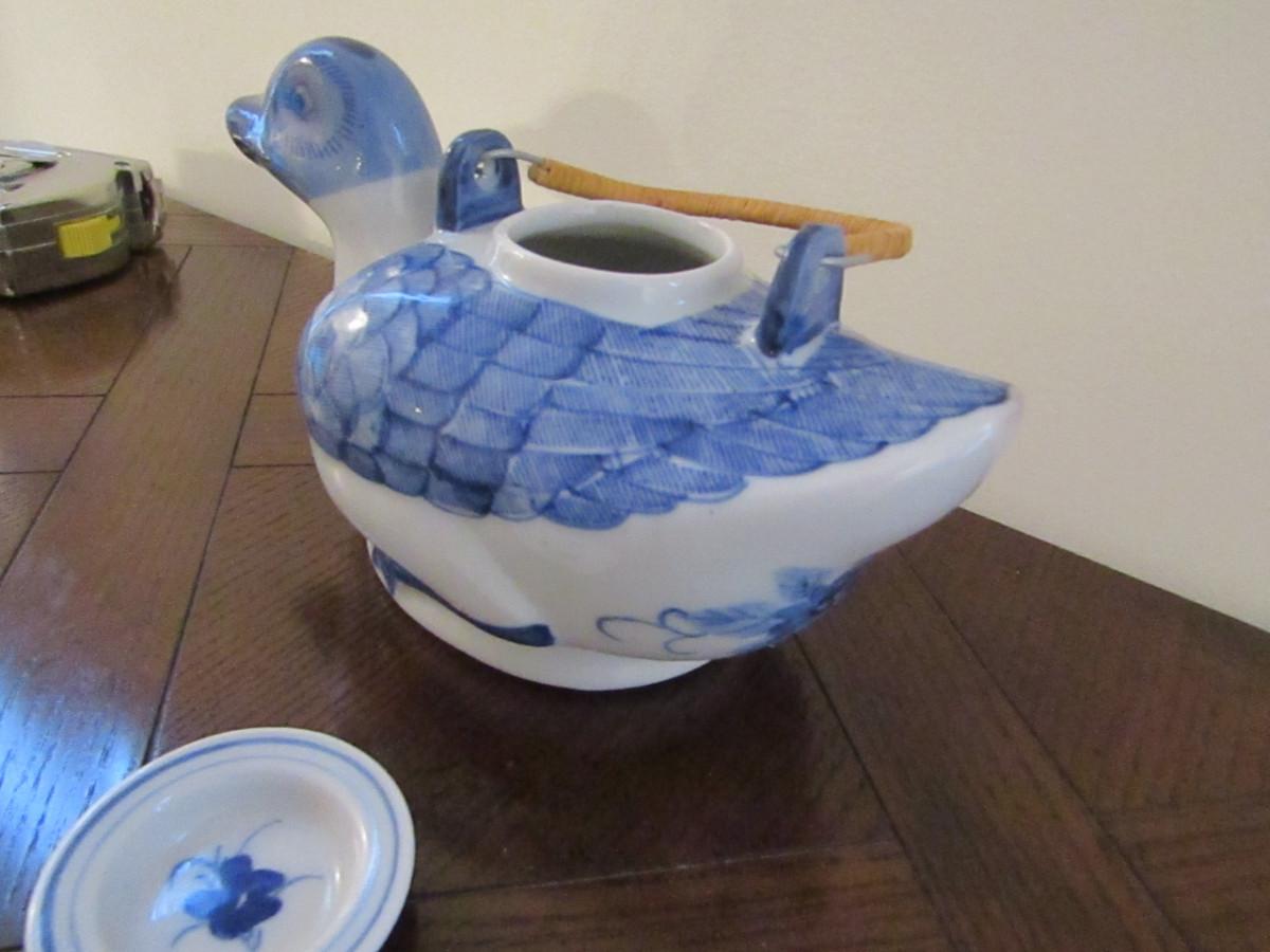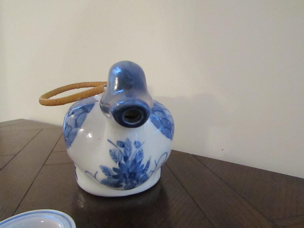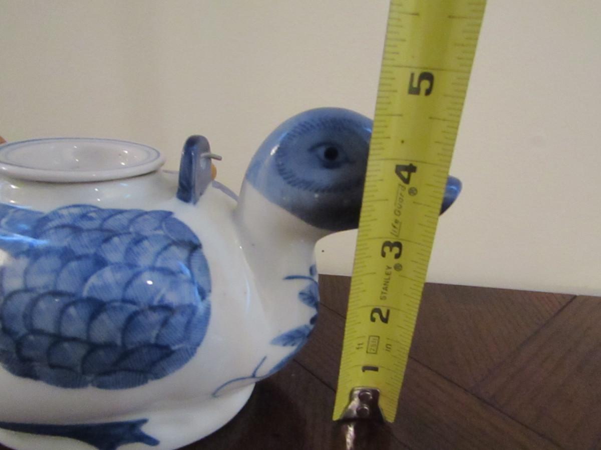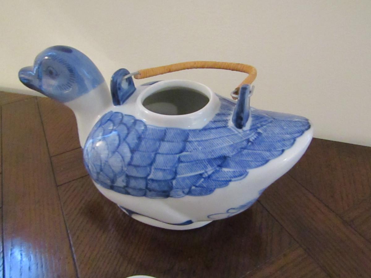 Duck Shaped Glazed Ceramic Teapot in Classic Blue and White