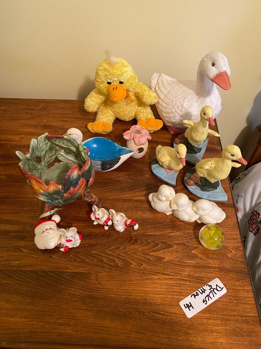 Ducks, Fitz and Floyd Christmas Lodge, and Small Fitz and Floyd Figures, As Pictured