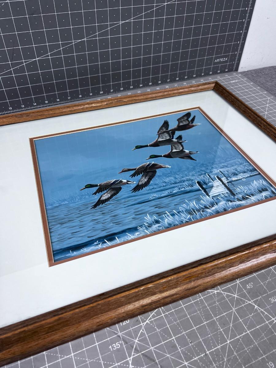 Measures 22 X 18" Framed Matted and under Glass. Authentic.