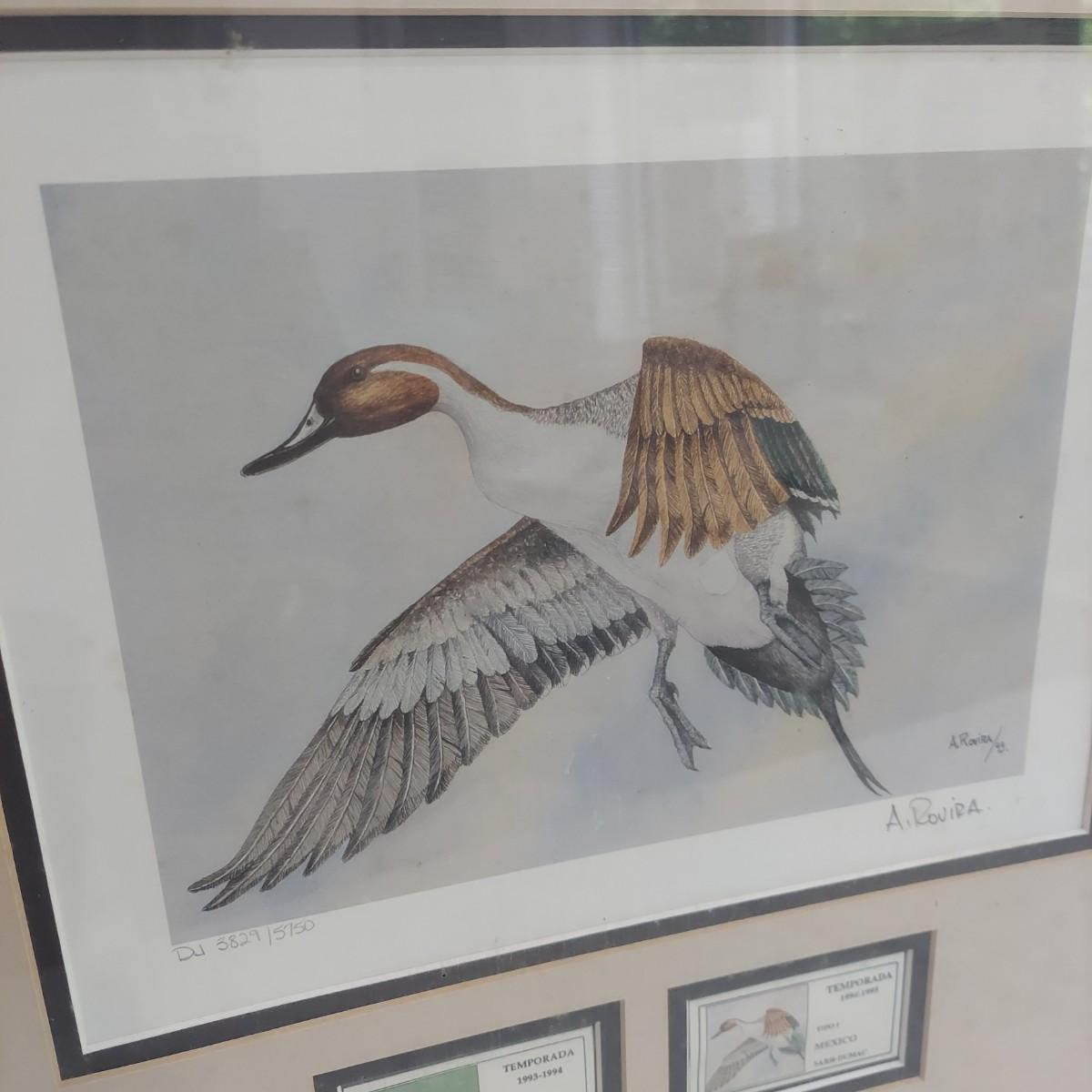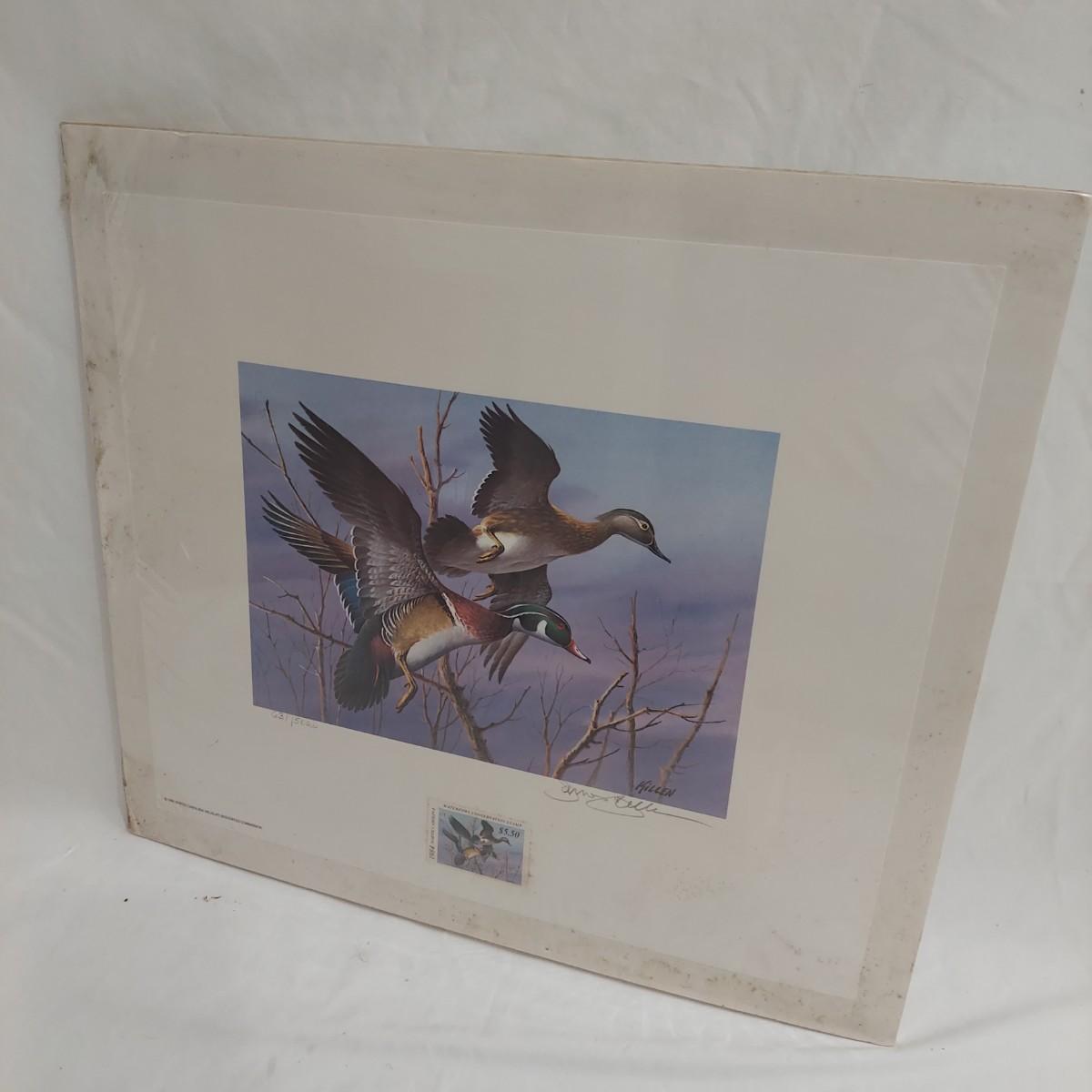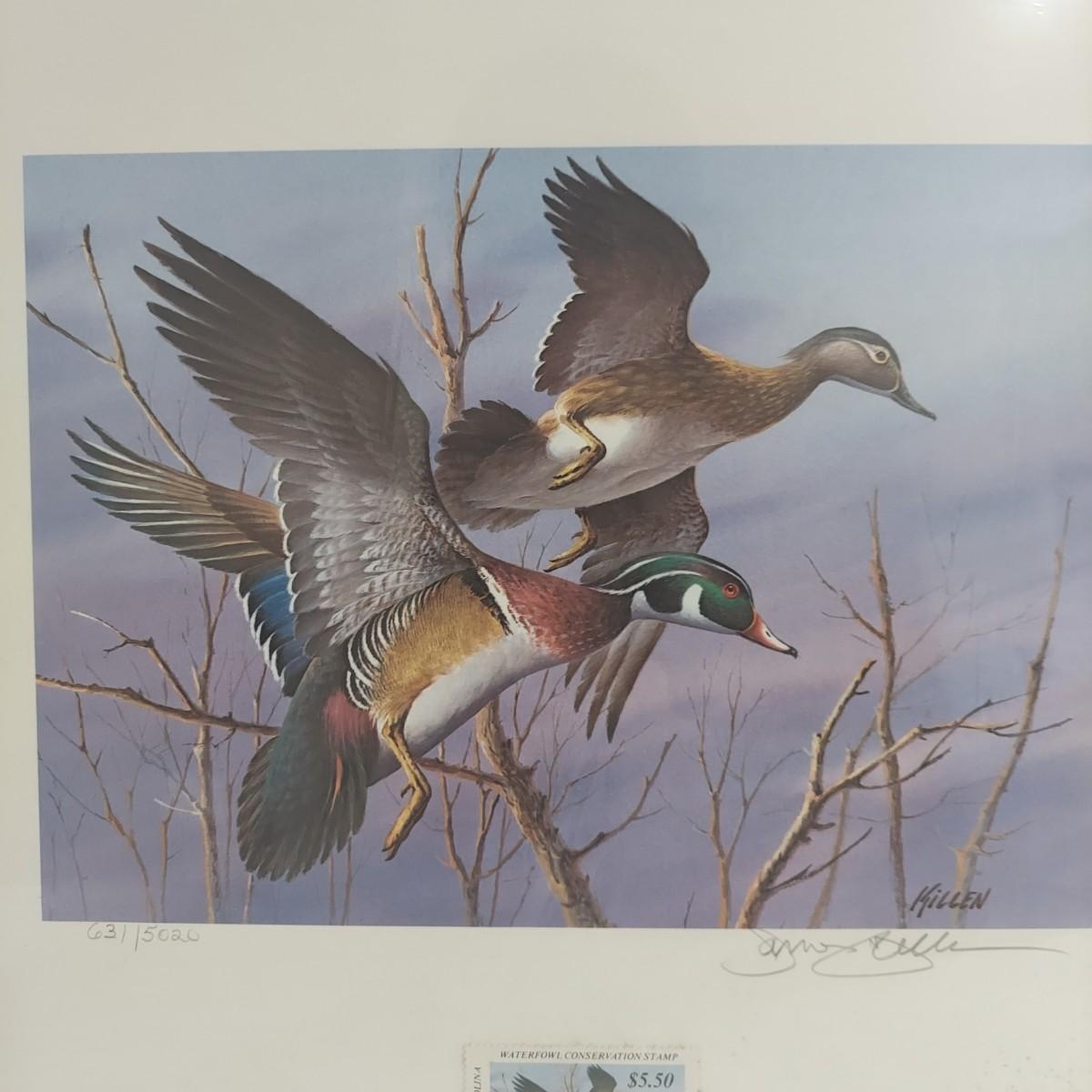 Lot includes three framed Ducks Unlimited collector stamps with their original artwork. Prints are pencil signed and numbered. Frames appear to be wooden. Also includes three unframed prints with stamps. Please see photos for details. The larger pieces individually measure 17.5” x 21.5”. Those pieces are protected under glass. Shipping available