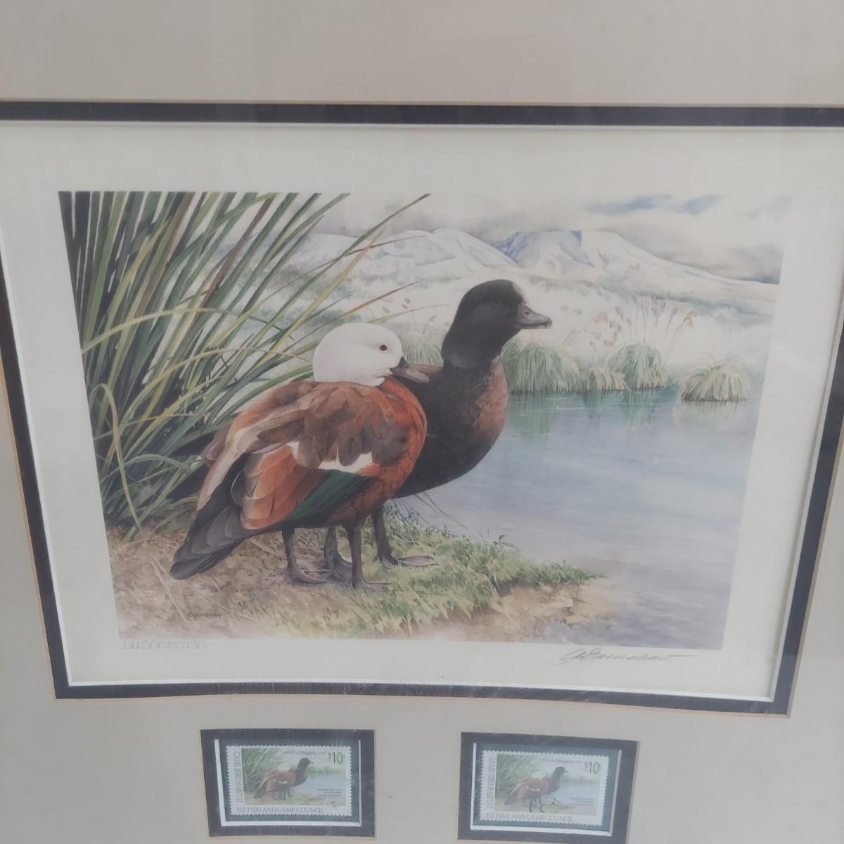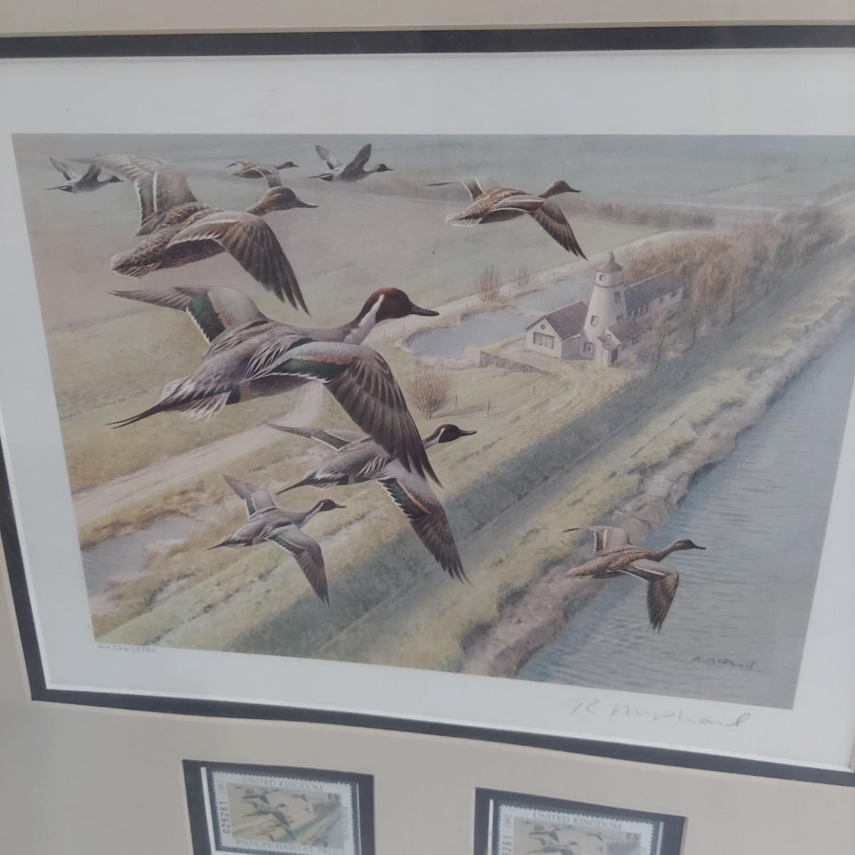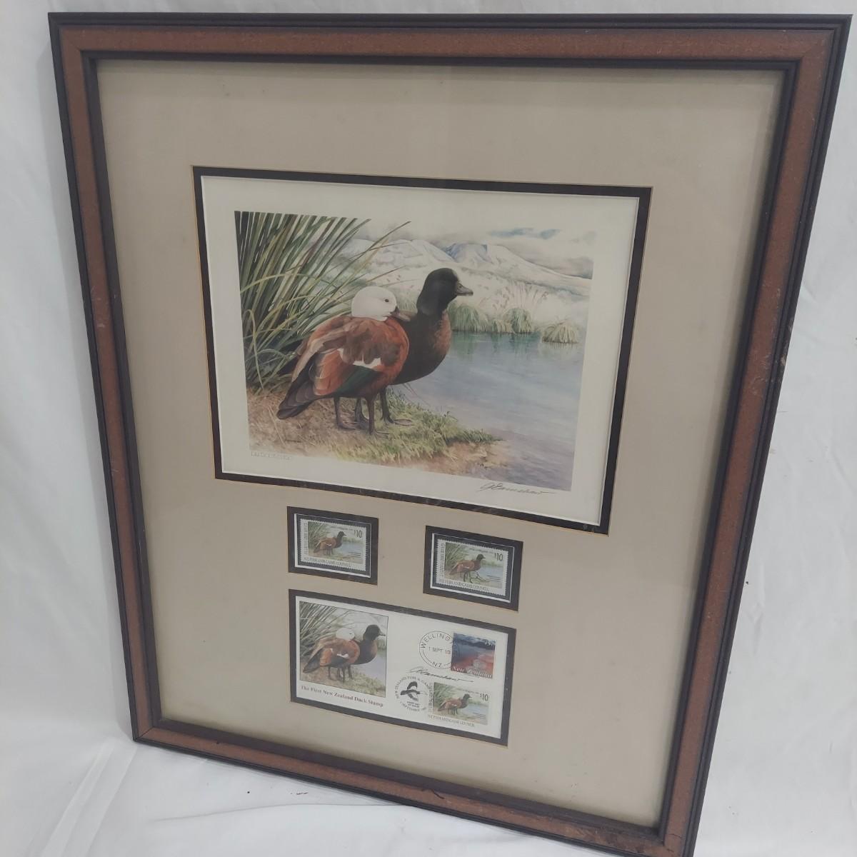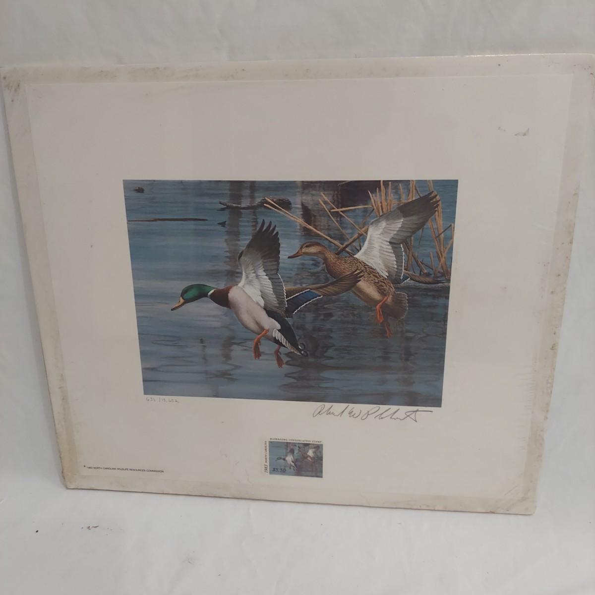 Lot includes three framed Ducks Unlimited collector stamps with their original artwork. Prints are pencil signed and numbered. Frames appear to be wooden. Also includes three unframed prints with stamps. Please see photos for details. The larger pieces individually measure 17.5” x 21.5”. Those pieces are protected under glass. Shipping available