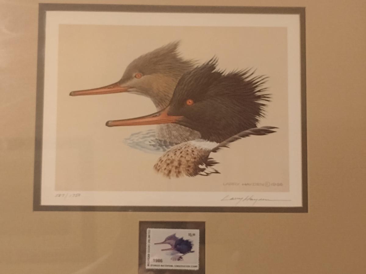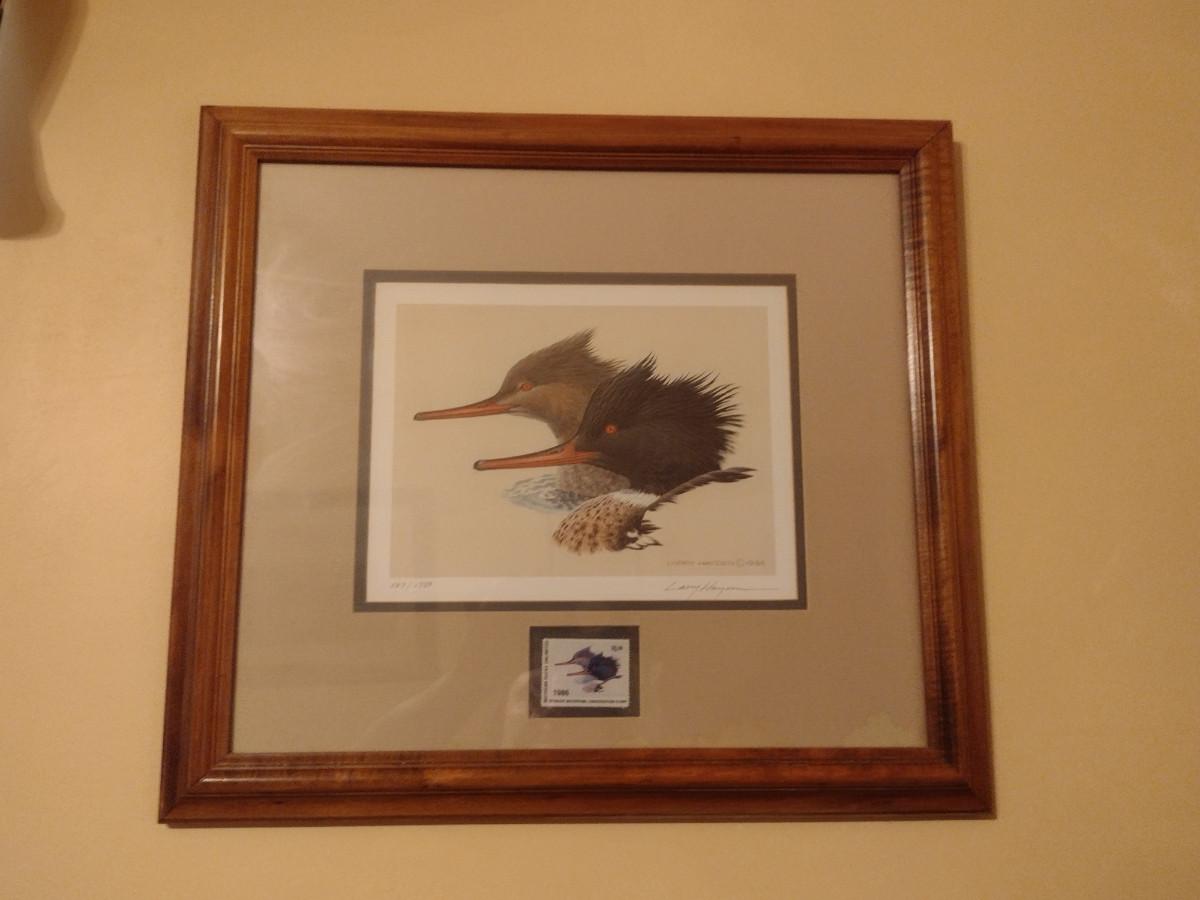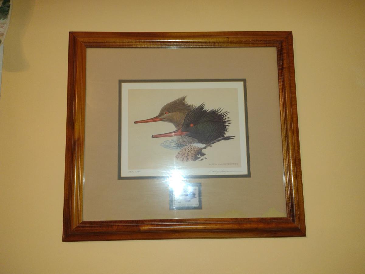 Ducks Unlimited Stamp and Print by Larry Hayden- Framed Under Glass- Signed and Numbered