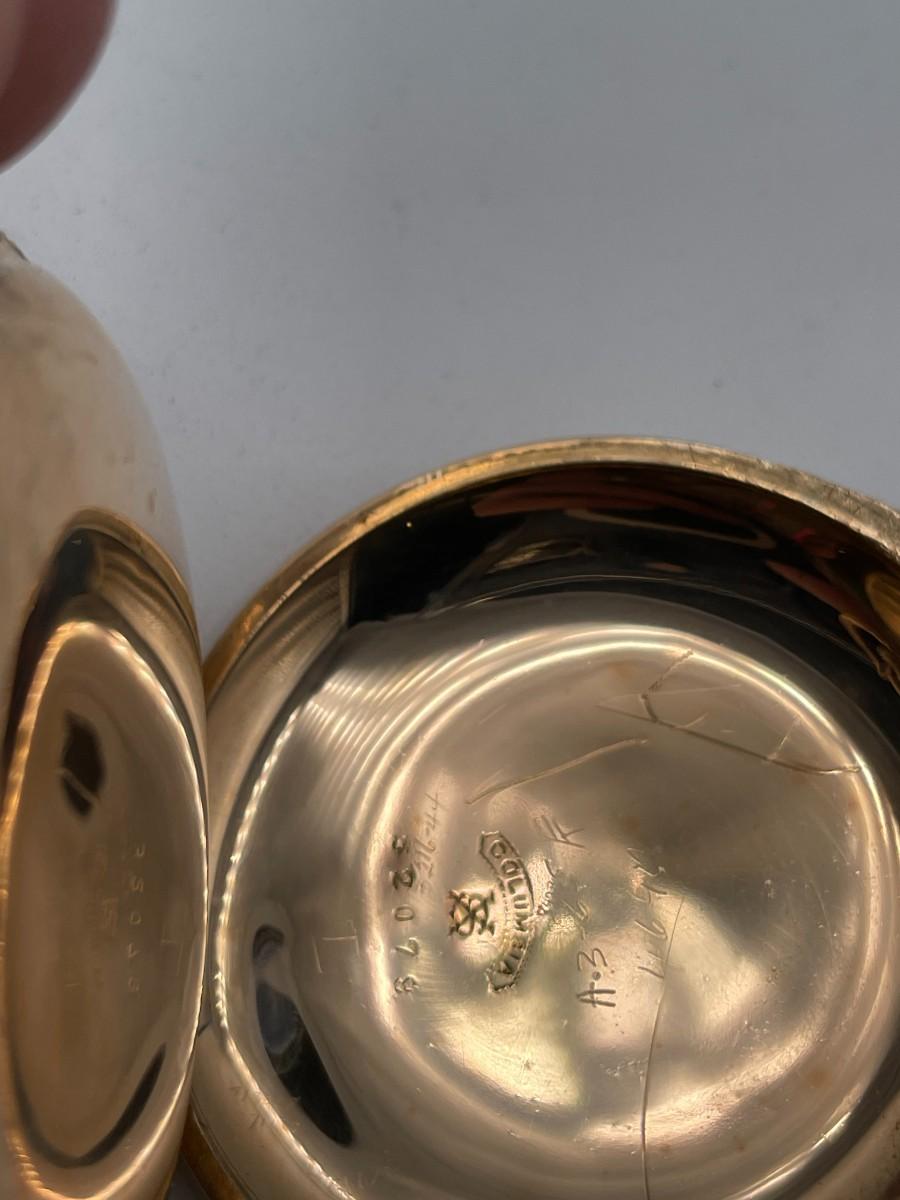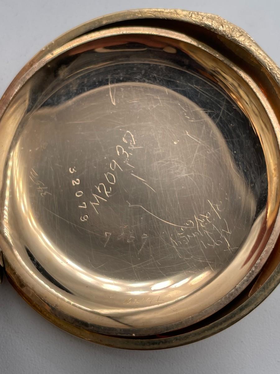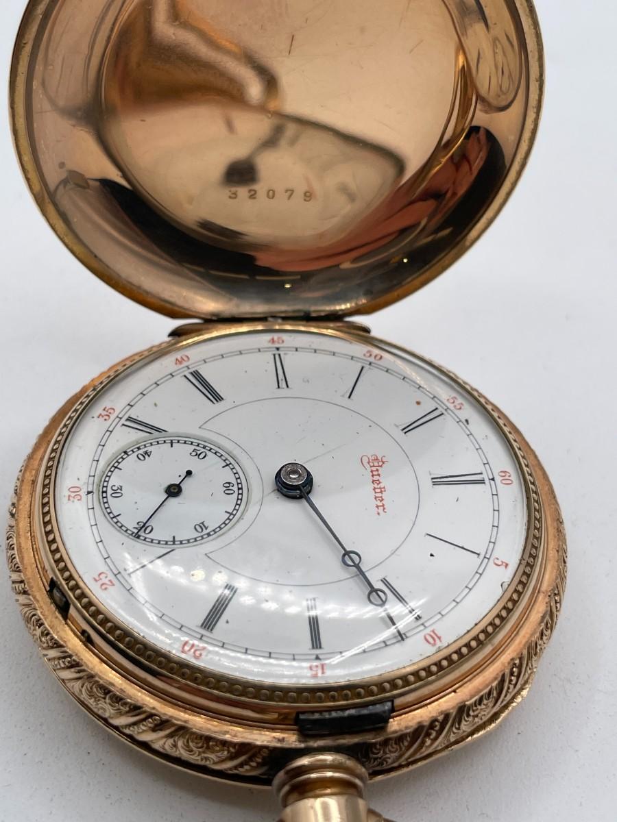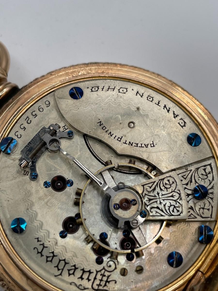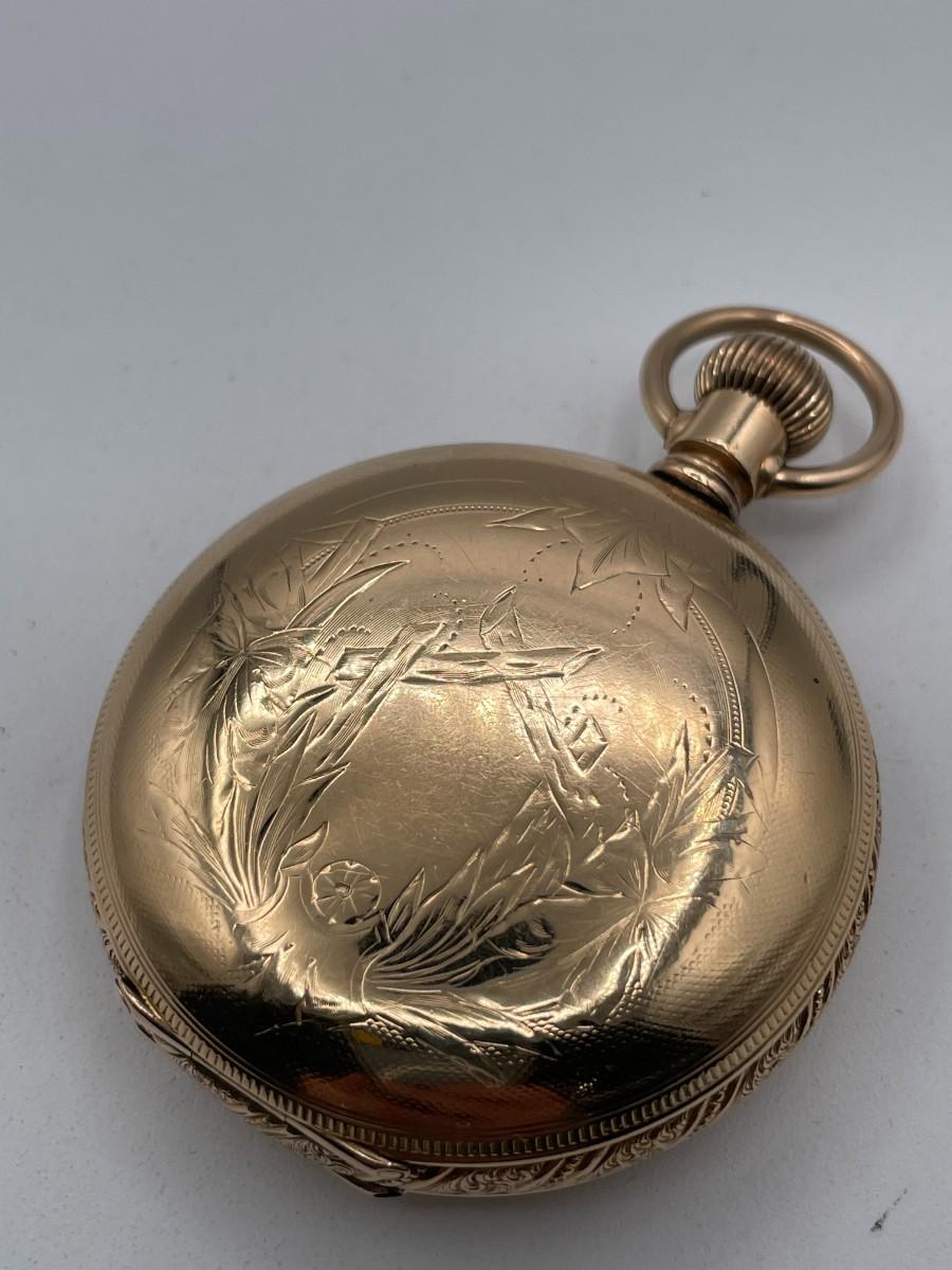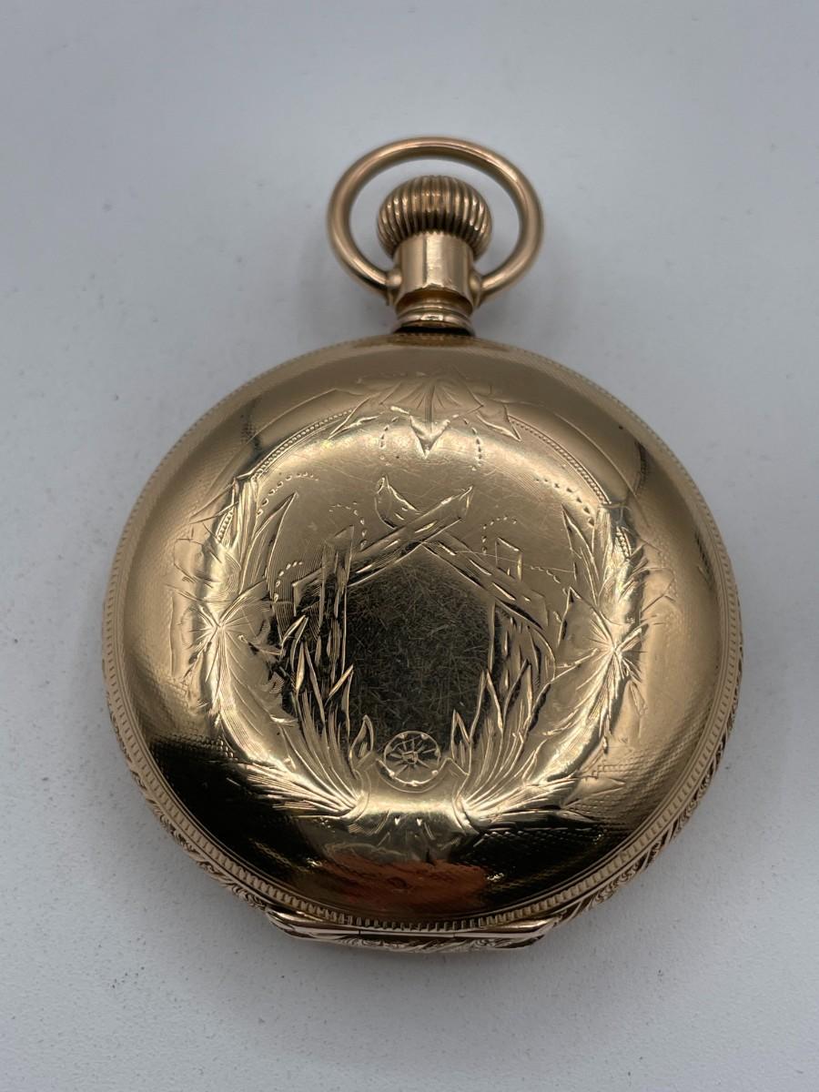 Dueber Pocket Watch, No. 695253, Size 18s. Case: Columbia No. 32079, Acie Tested 14K. Condition - Winder & watch are in working order. This is not a guarantee that all parts are original nor is the watch autheniticated.