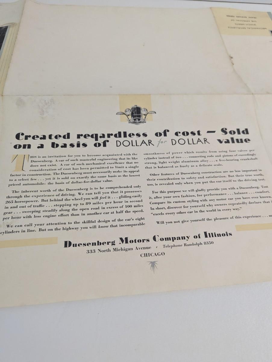 Duesenberg Motors Vintage 1930's Foldout Brochure