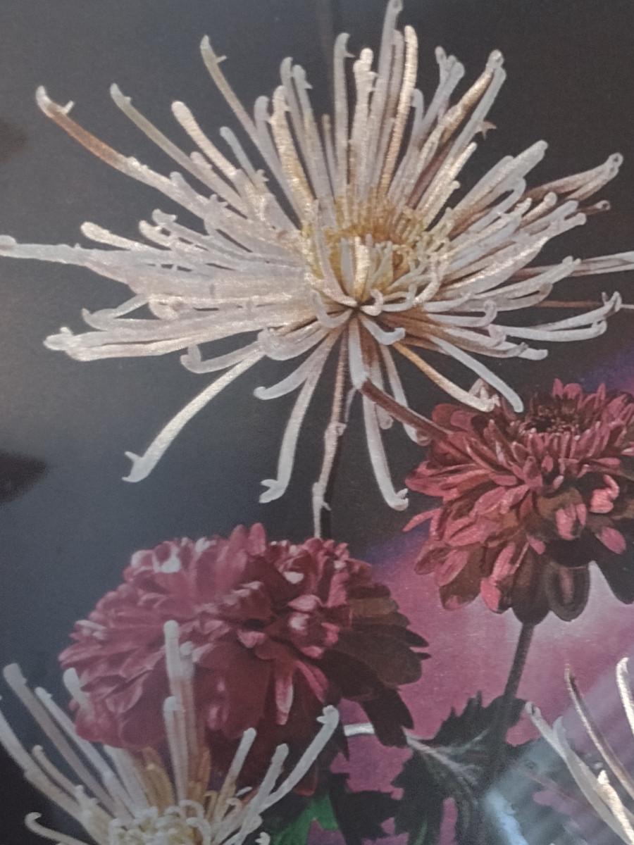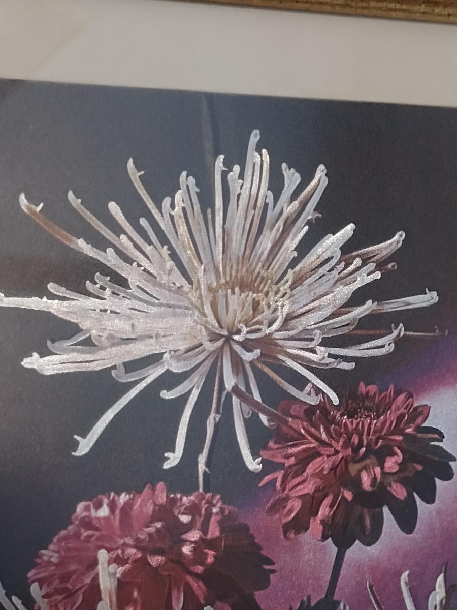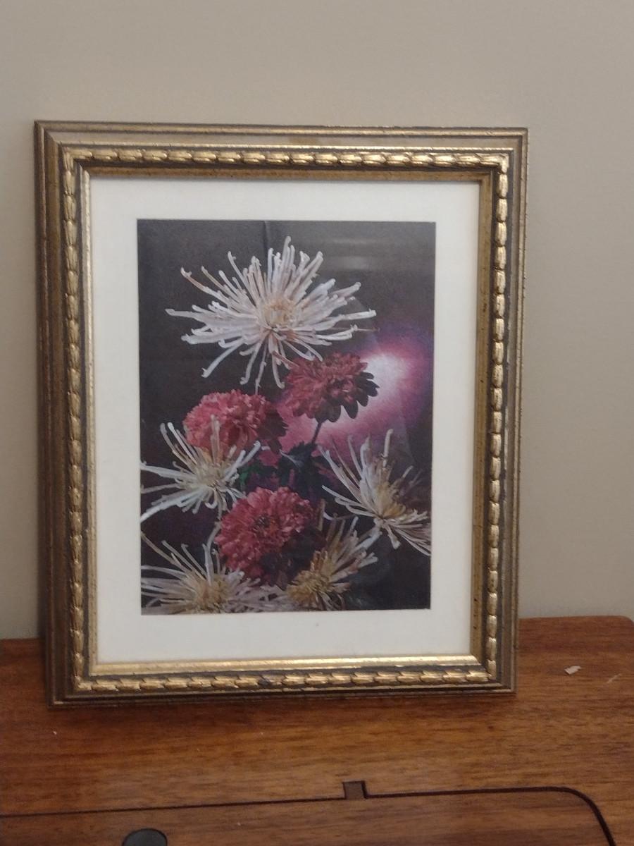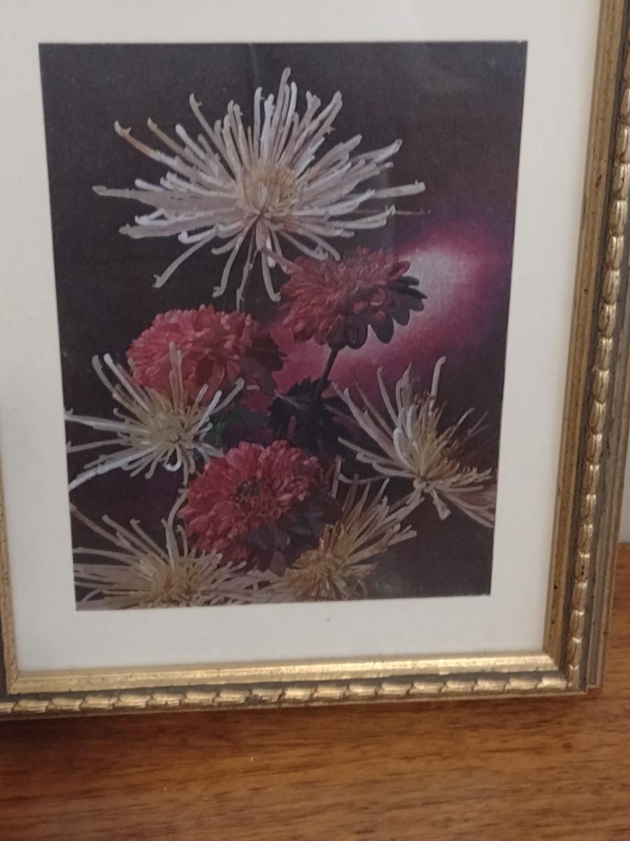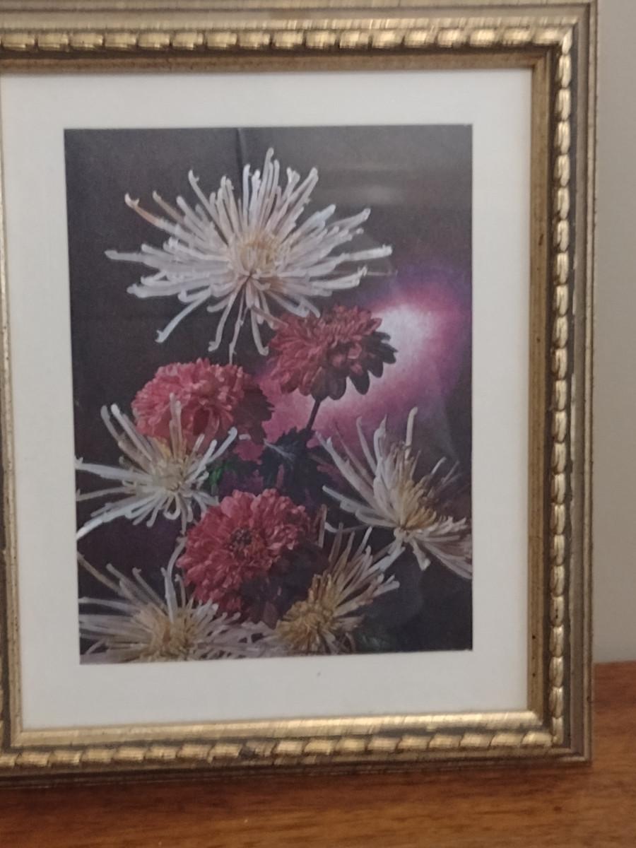 Dufex Foil Chrysanthemums Print- Framed Under Glass- Approx 9 3/4" x 12"