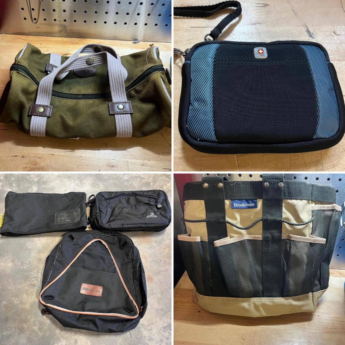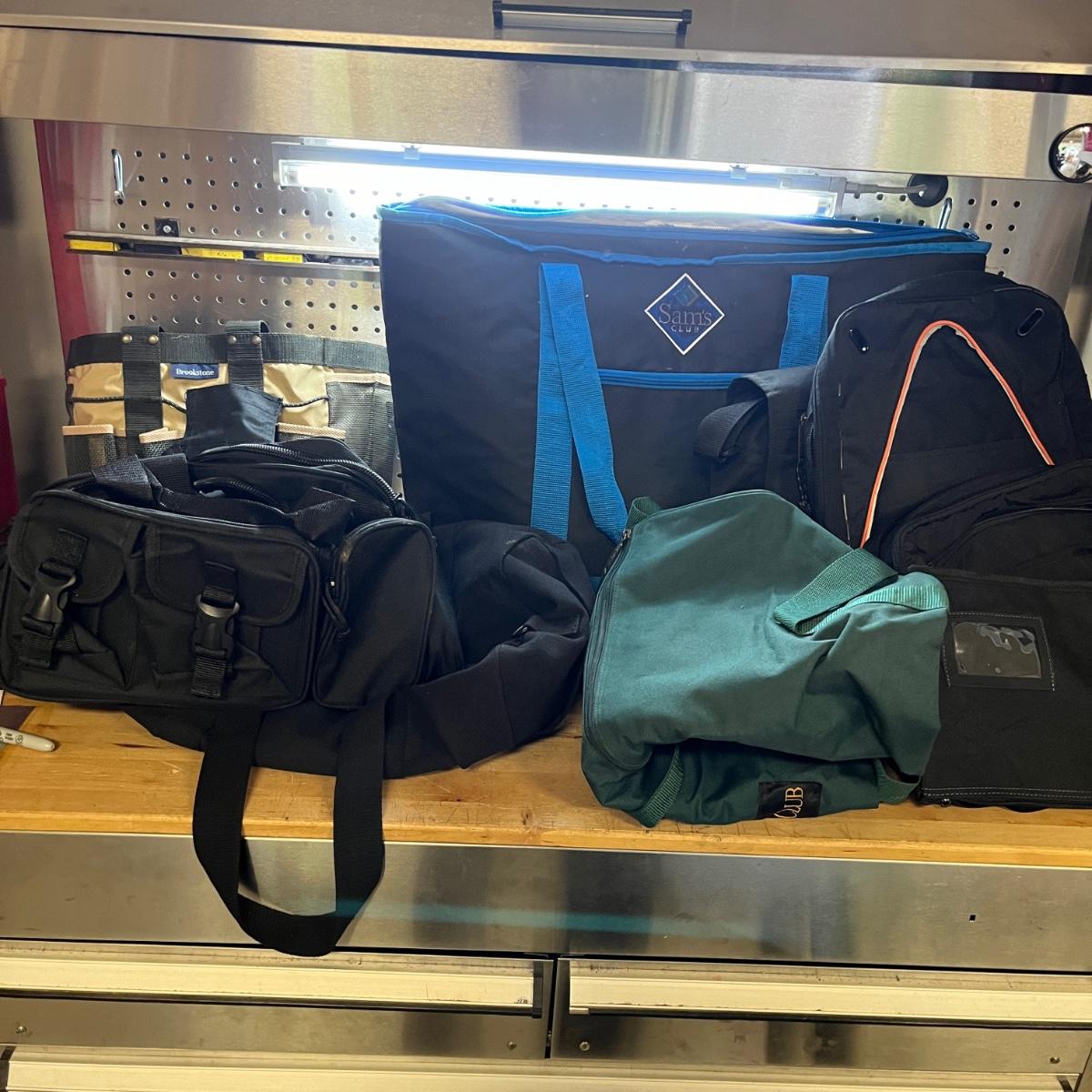 Lot includes a collection of duffel bags and more. Includes a large duffel bag with backpack straps, Brookstone tote, Sam’s cooler bag and more bags. Largest bag measures 18” x 32” x 12”H.