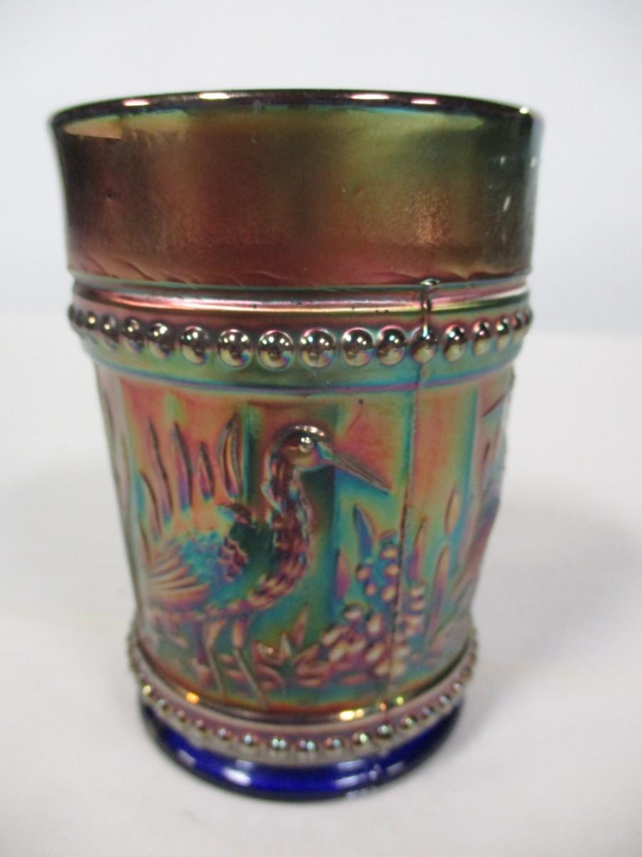 4" Dugan Blue Carnival "Stork & Rushes" Tumbler #92
