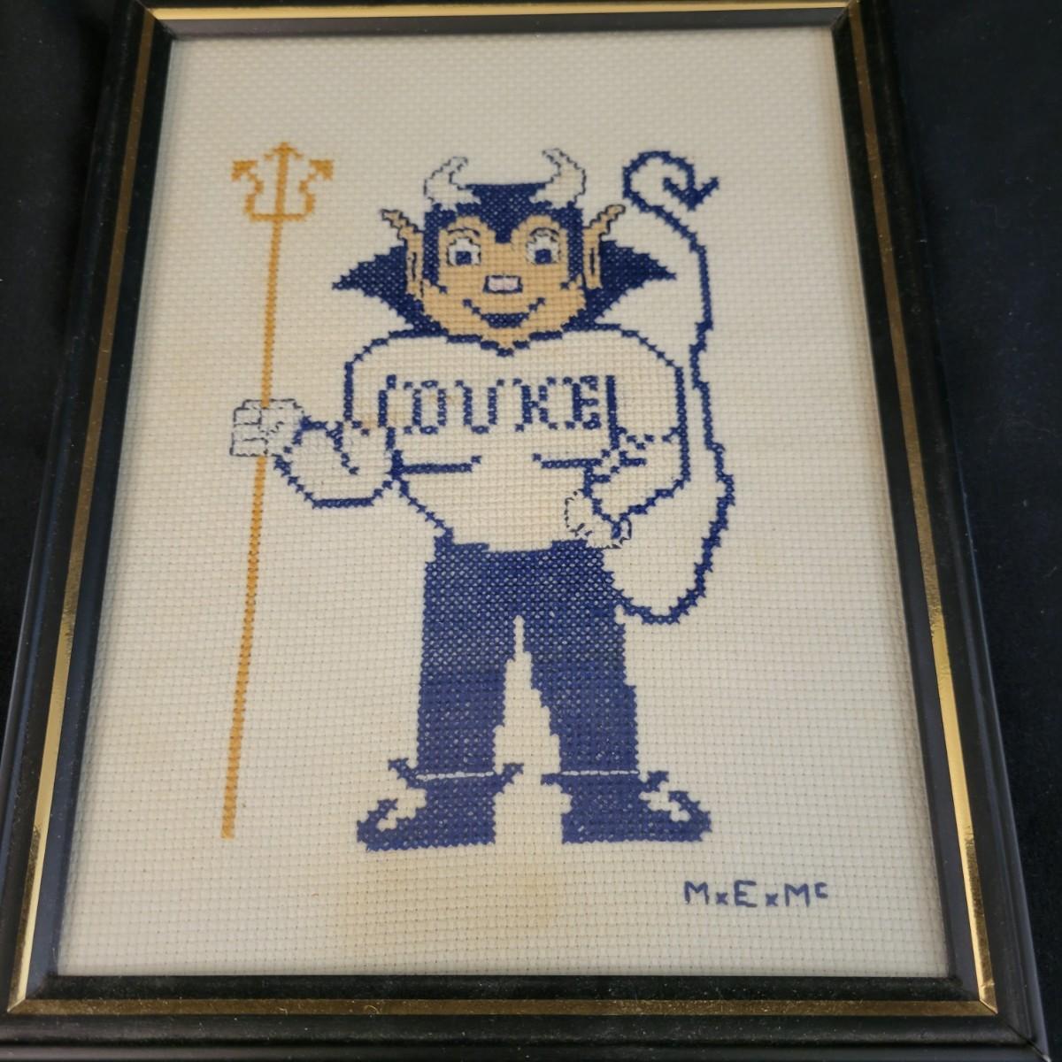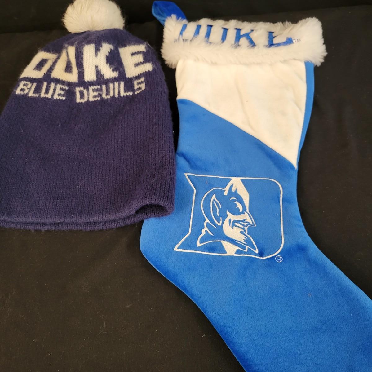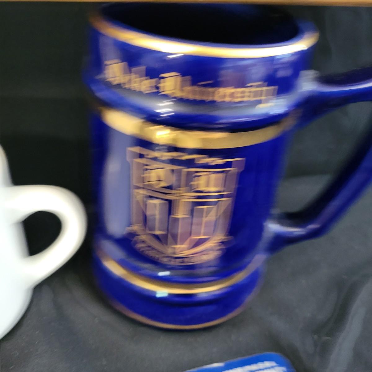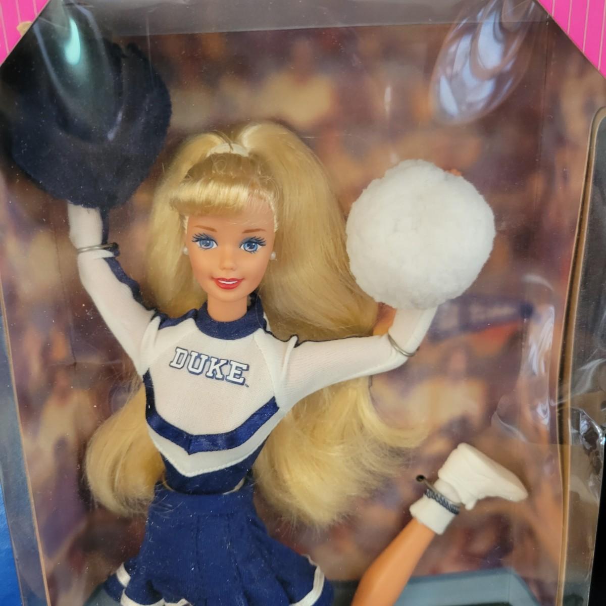 A huge lot of Duke University memorabilia that is in good condition overall. Some posters have some damage, see attached pictures for more detail. If you're a huge Duke fan, you’ll want this collection! Books, posters, magazines, pins, bottle openers, mugs, clocks, a laminated Blue Devils 2000-2001 roster photo, and much more! There's even a Duke Barbie! Largest poster measures approximately 25" x 30".