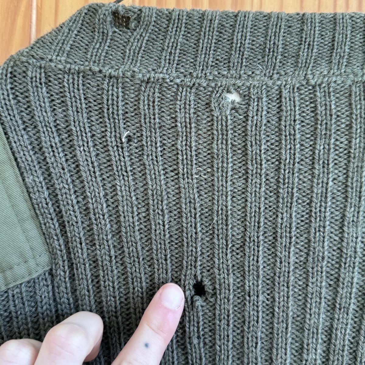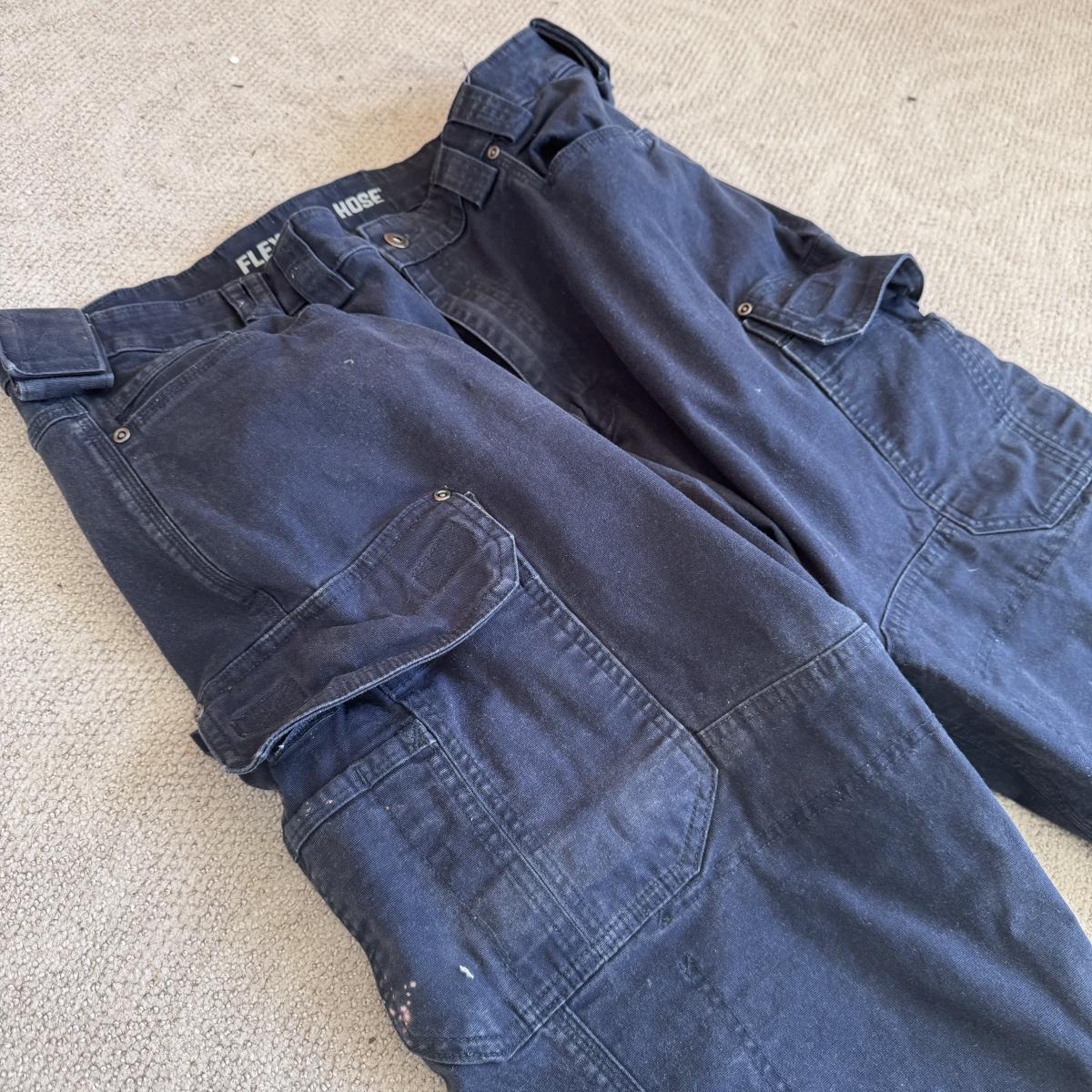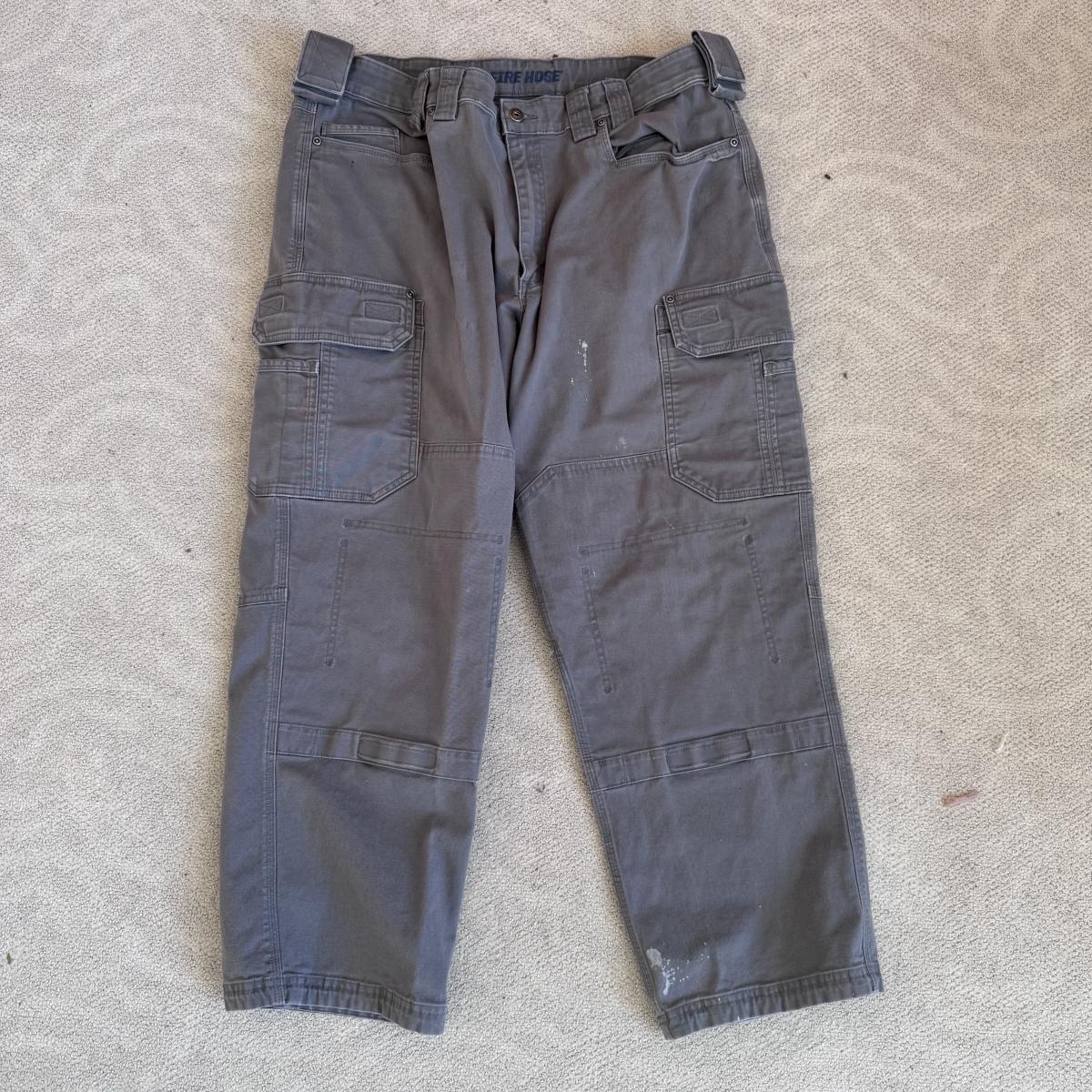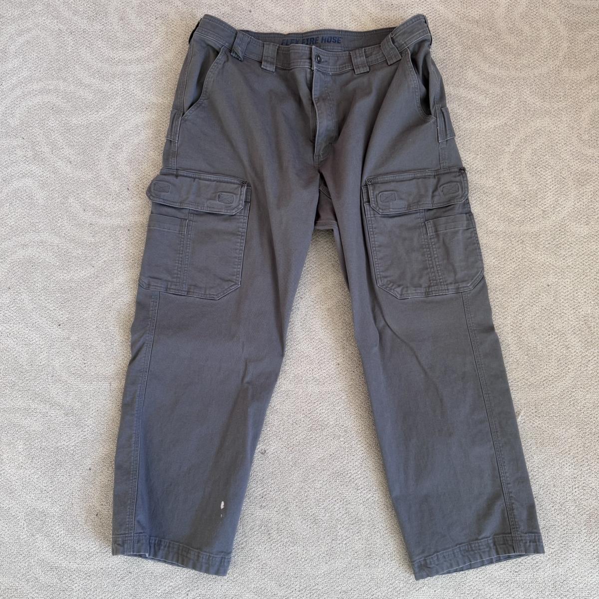 This lot includes three pairs of Duluth Flex Fire Hose pants in a size 40 x 30, one brown Duluth sweater in a size large, and one light brown Duluth t-shirt in a size XL. It also includes one green wool sweater by Brigade Quartermaster in a size 44. The back of the wool sweater has a few small holes on the top - see picture included. The Duluth pants have a few paint stains on them - see pictures. Shipping available.