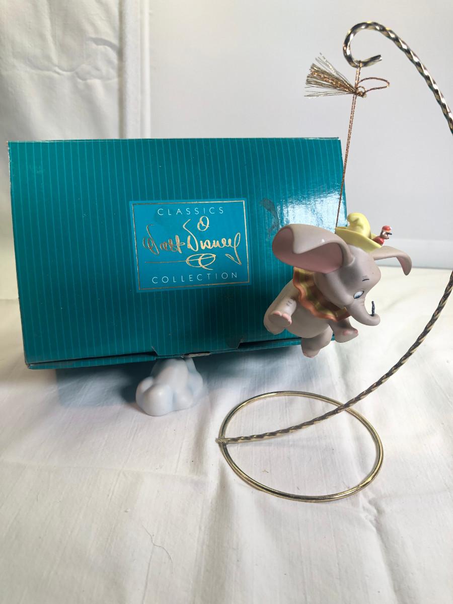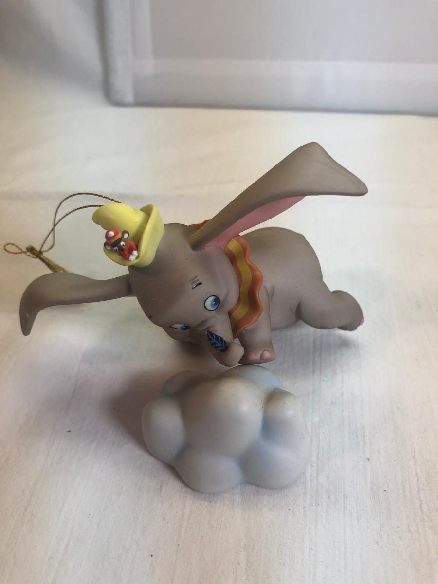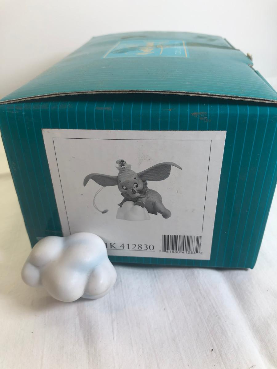 Dumbo &Timothy Mouse Item # 11K 412830 "When I See An Elephant Fly." in box without COA - it is in mint condition. the box is in good condition. Dumbo is made of porcelain and measures about 3.5" long and his ear span across is about 4". He rests on a porcelain cloud (separate piece) for display. His foot is marked " Disney WDCC". Disney collector's