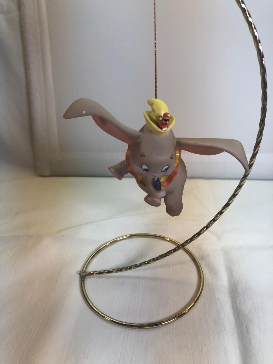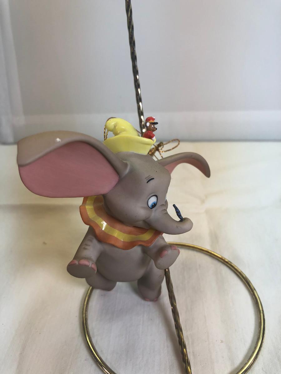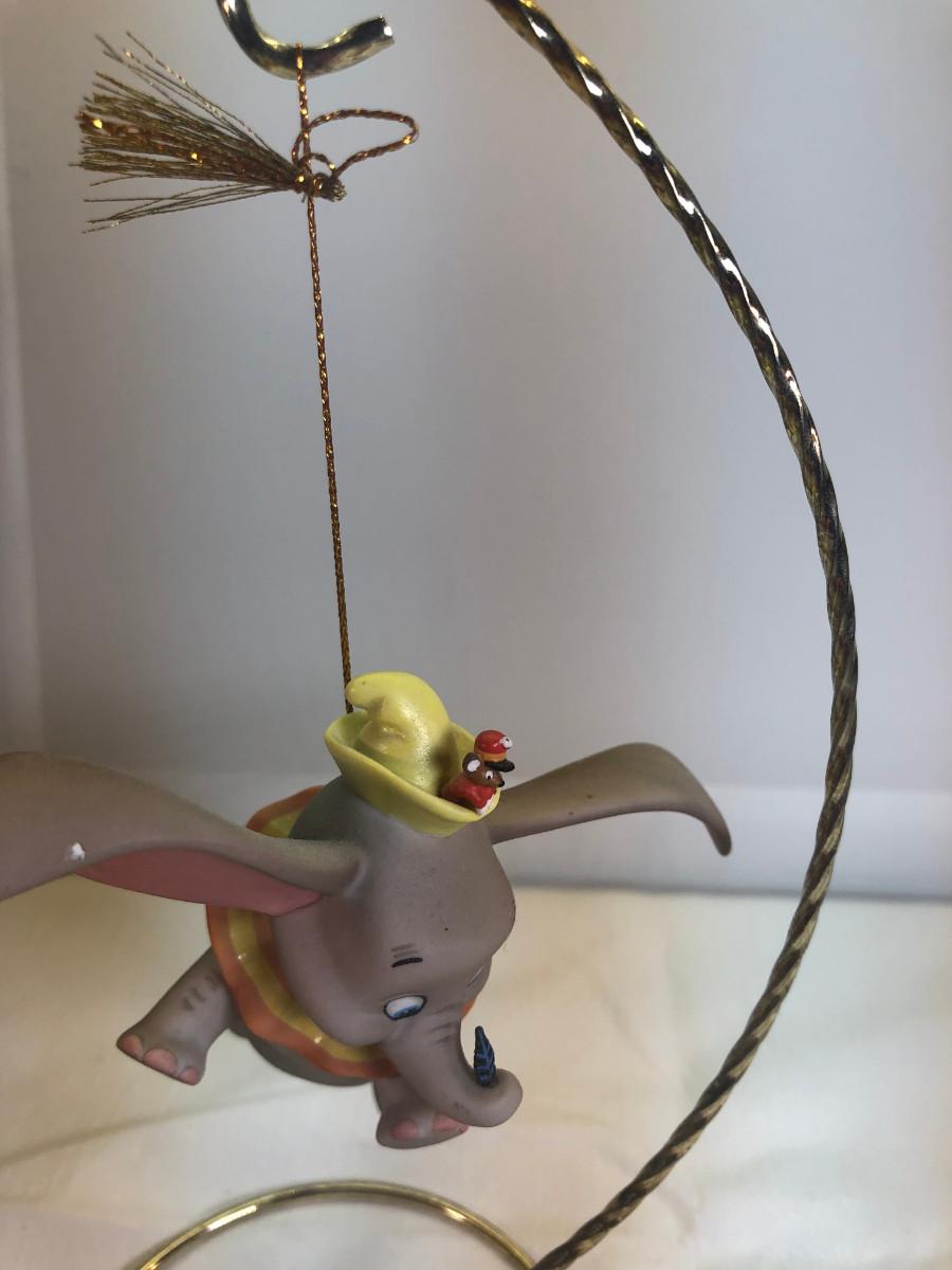 Dumbo &Timothy Mouse Item # 11K 412830 "When I See An Elephant Fly." in box without COA - it is in mint condition. the box is in good condition. Dumbo is made of porcelain and measures about 3.5" long and his ear span across is about 4". He rests on a porcelain cloud (separate piece) for display. His foot is marked " Disney WDCC". Disney collector's