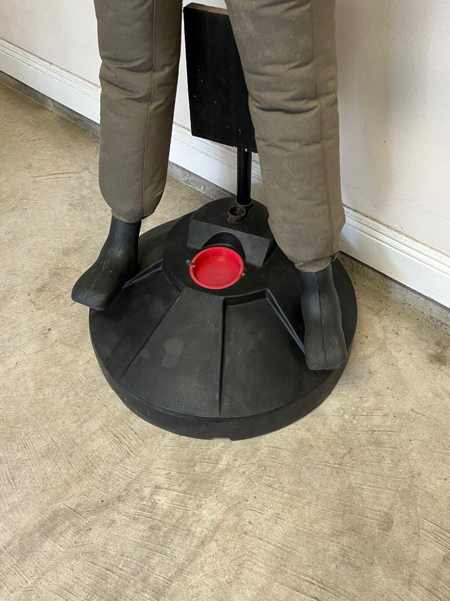 Cuff man on his stand = 72” H ~ Base = 27” Round ~ Cuff Man = 64” H x 29” W x 10” D