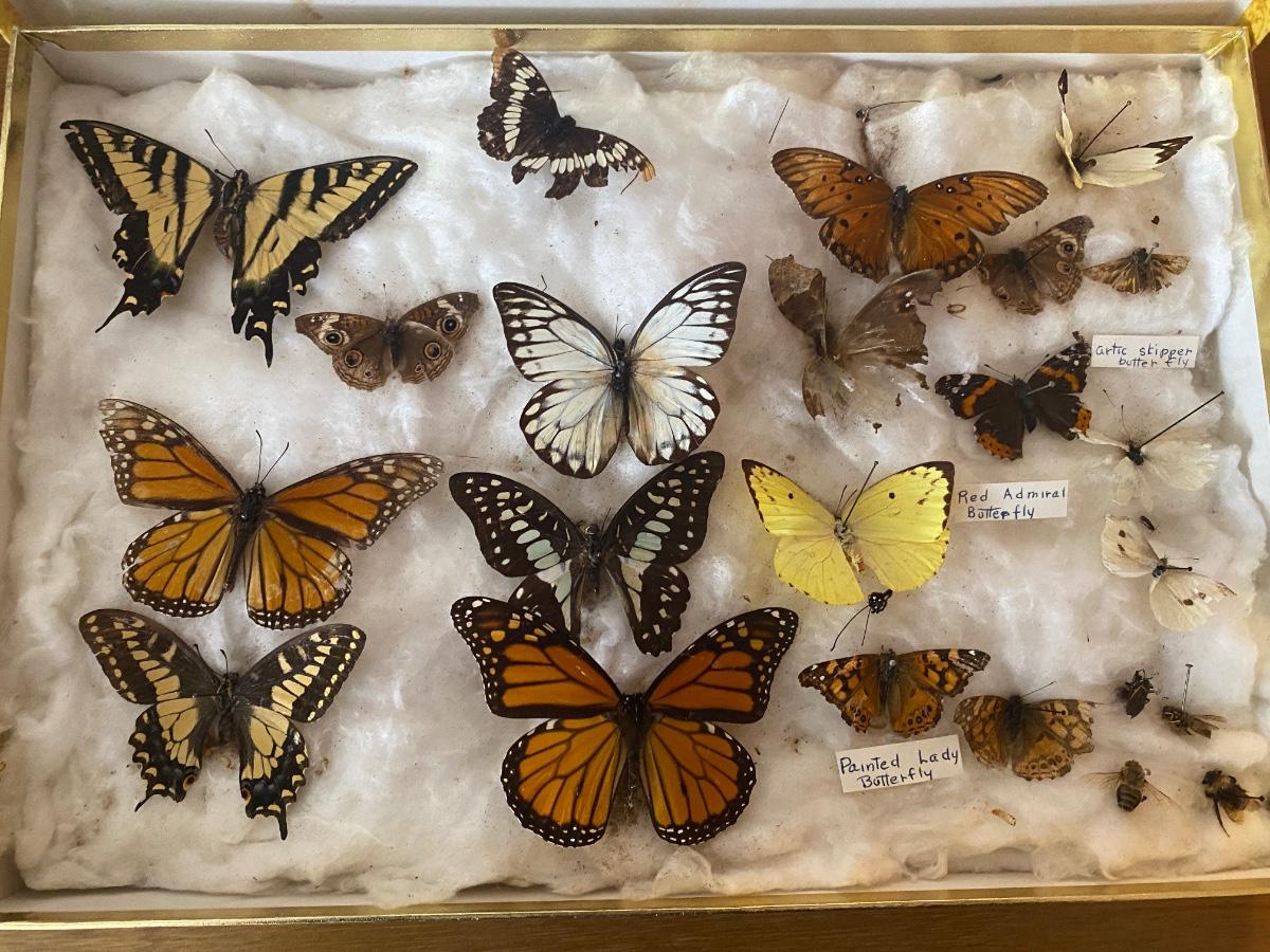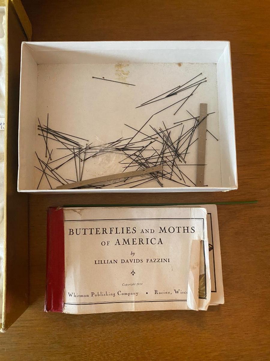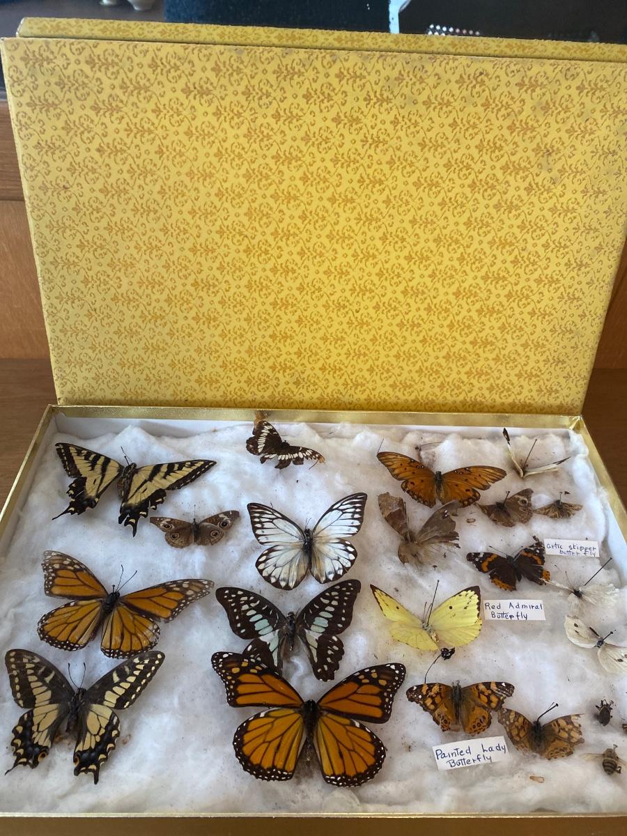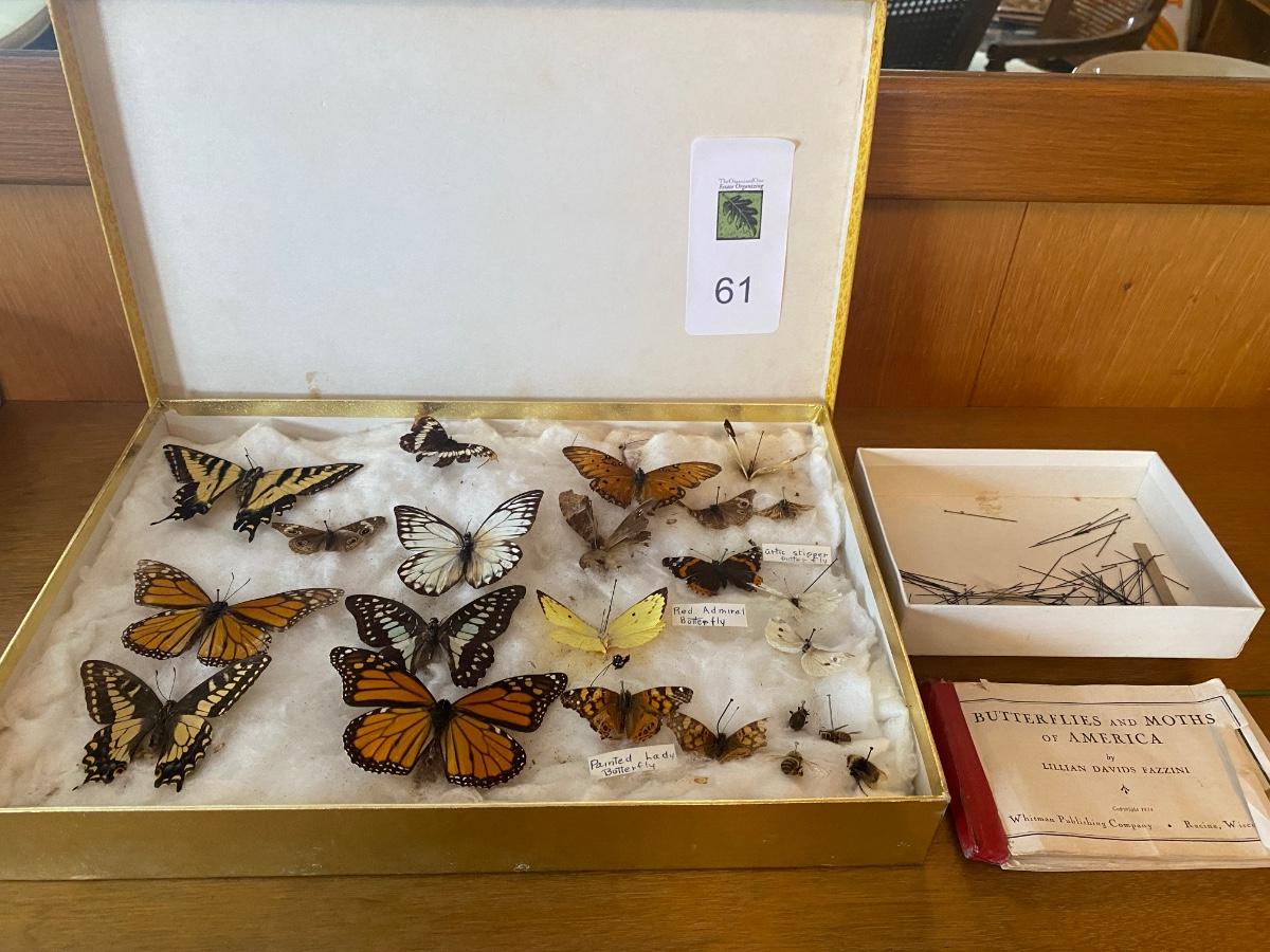 Collection of butterflies come in a beautiful fabric box with the book "Butterflies and Moths of America" along with mounting pins.