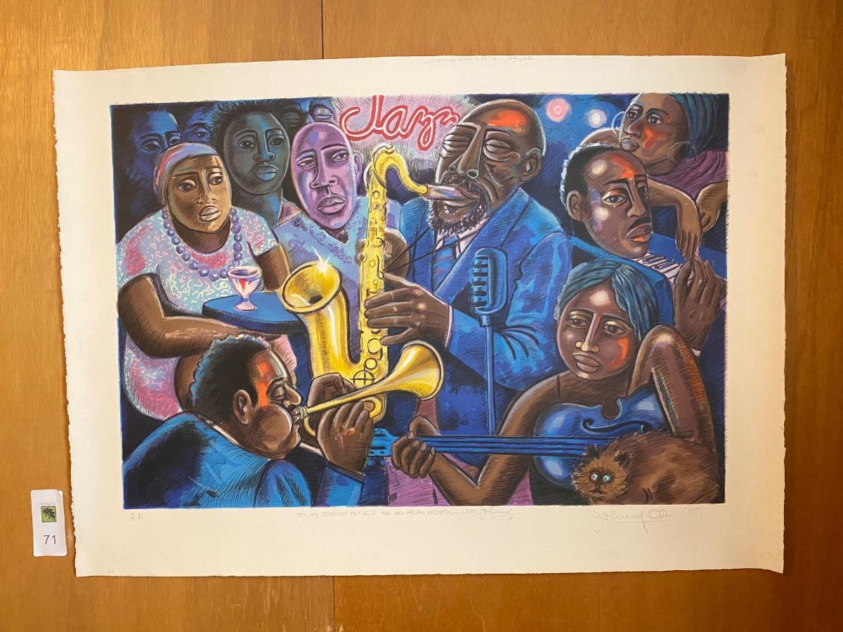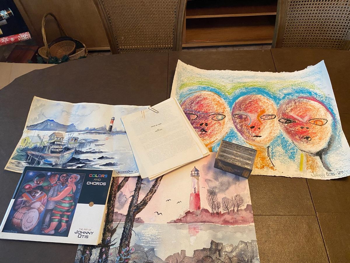 Collection includes, watercolors, Jazz lithograph, pastels, a manuscript and a copy of his book.