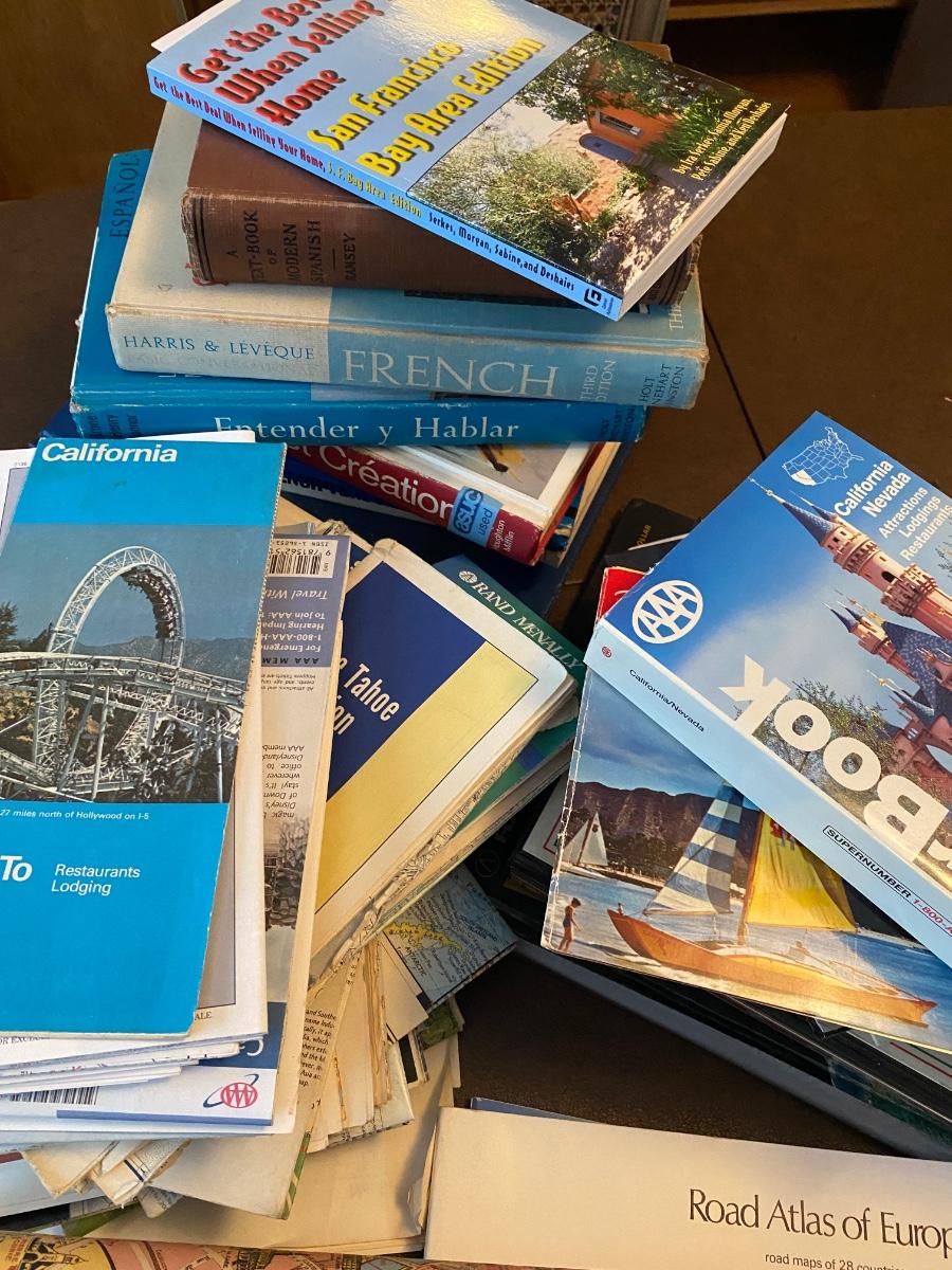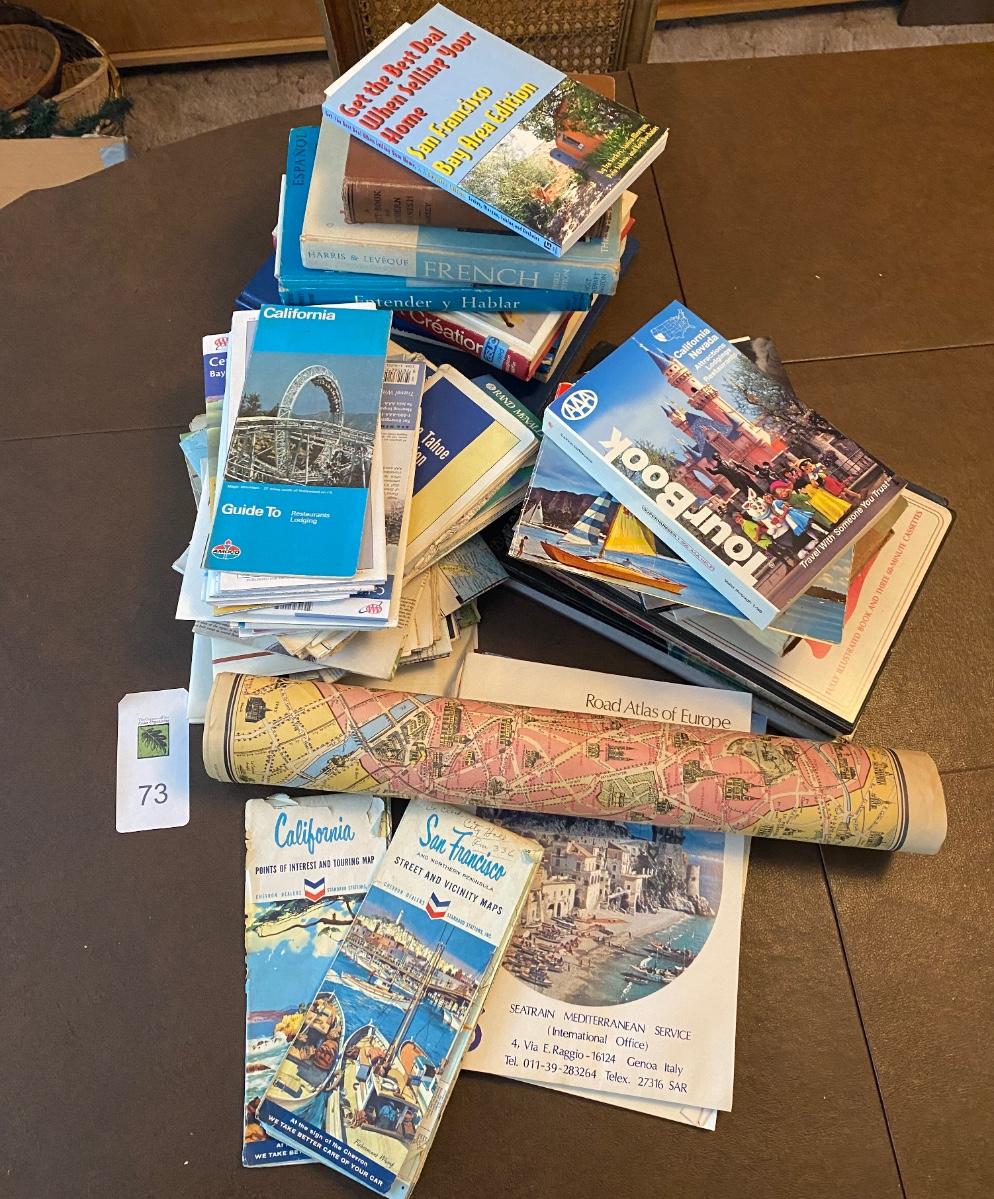 Large collection of maps from USA and around the world. Some vintage maps. Various travel books